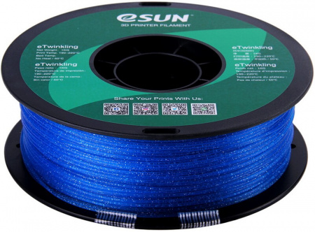 eTwinkling — представляет собой дизайнерскую разновидность пластика PLA от eSUN. Это один из самых подходящих материалов для смелых творческих экспериментов. Его главное отличие от стандартного PLA — в фактуре поверхности. Она даёт лёгкое мерцание при попадании на неё света.