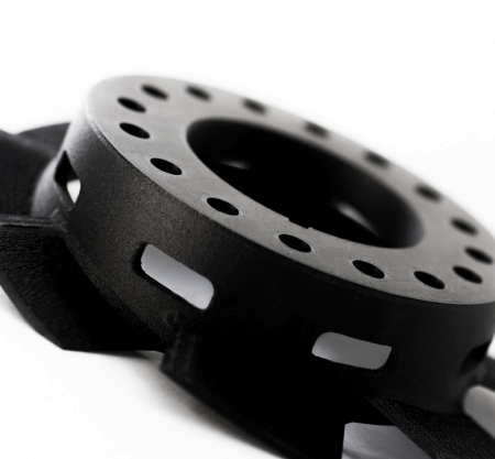 Добавление углеродного волокна помогло решить известную проблему ABS: данный материал даёт заметно меньшую усадку, демонстрируя отличную стабильность размеров и хорошую повторяемость. Готовые изделия имеют гладкую поверхность и характерный матово-глянцевый блеск.