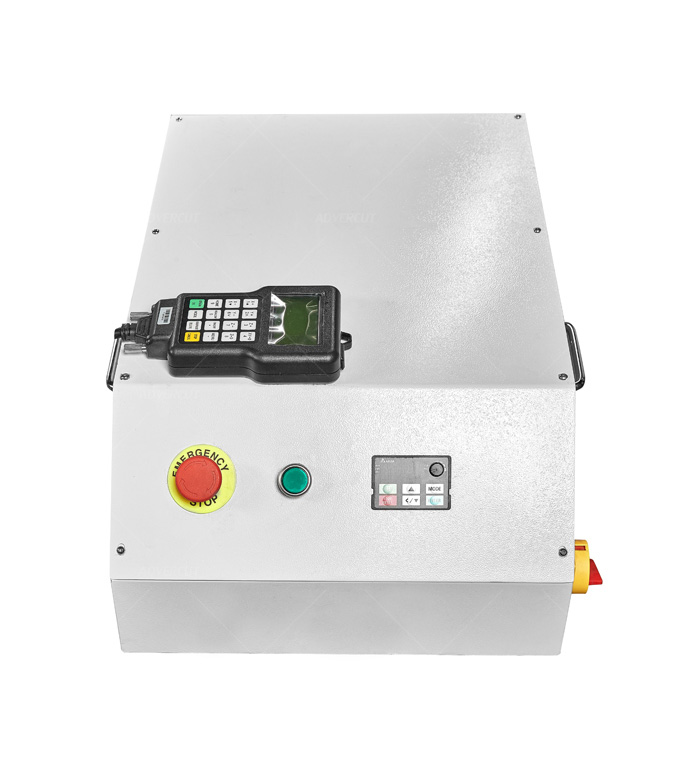 Управление осуществляется через встроенный DSP-контроллер Richauto — надёжную и проверенную систему с полным набором функций для профессиональной работы. Для управления шпинделем используется частотный преобразователь Delta, а приводы осей построены на шаговых двигателях с драйверами Leadshine.