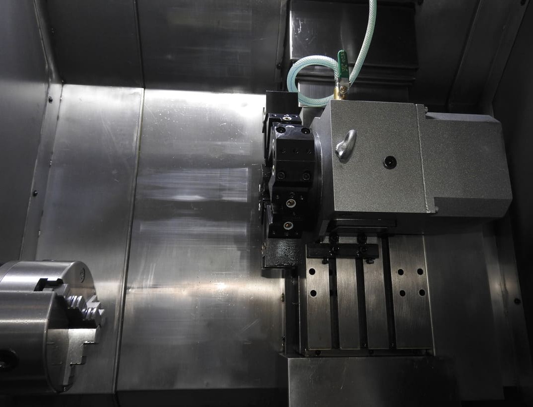 Для защиты оператора станок оснащён кабинетной защитой — прозрачным экраном, который надёжно изолирует рабочую зону от разлетающейся стружки и охлаждающей жидкости, обеспечивая максимальную безопасность при эксплуатации.