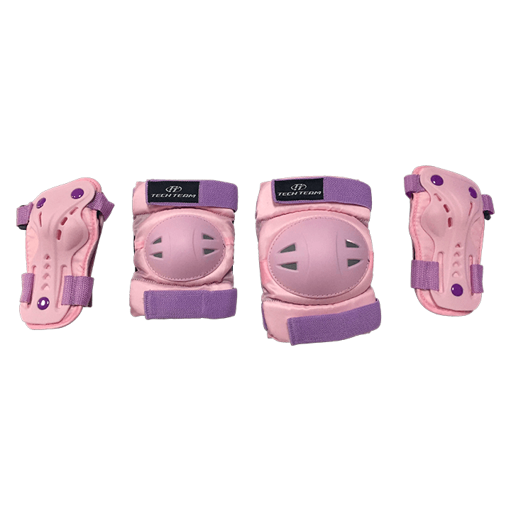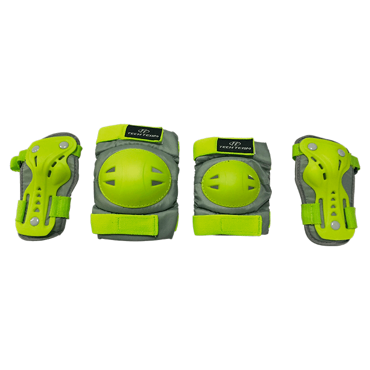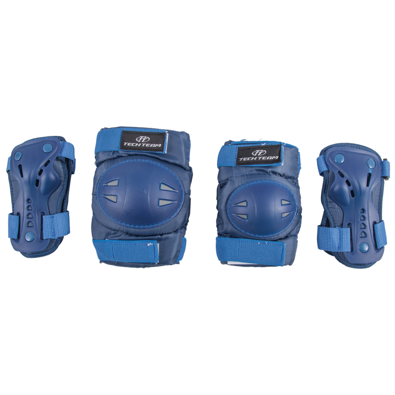 Детский комплект защитыSafety Line 500 2019, доступный в трех цветах: от российского бренда Tech Team. Щитки наколенников и налокотников сделаны из АБС пластика с мягкими проставками. Удобная регулируемая застежка на липучке. Два размера на выбор: S, M.