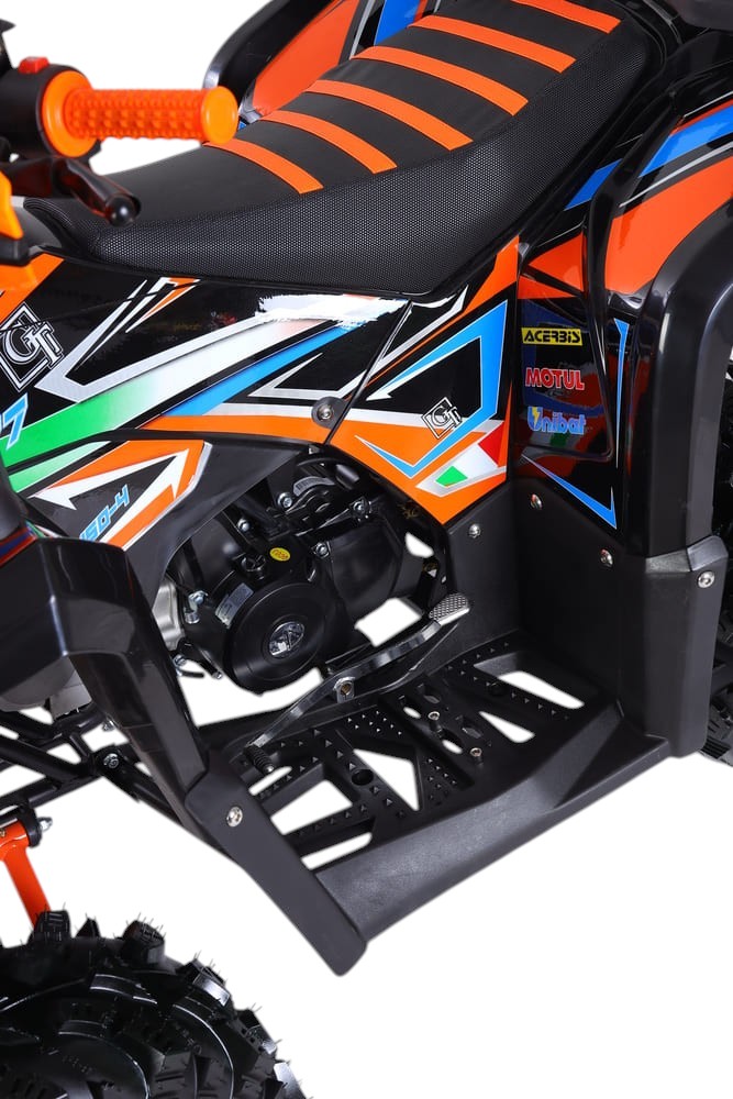 GT ATV K125 — это надёжный бензиновый квадроцикл, разработанный для активного отдыха, сельскохозяйственных нужд и эксплуатации на сложных участках. Оснащённый 4-тактным двигателем объёмом 125 см³, он развивает мощность до 9 л.с. и обеспечивает максимальную скорость до 50 км/ч. Двигатель работает на бензине и охлаждается воздушным способом, что делает его простым в обслуживании и устойчивым к перегреву при умеренных нагрузках.
