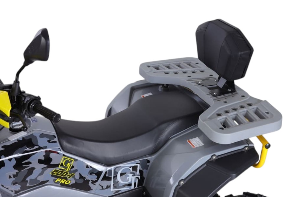 Общий вес модели составляет 250 кг, а максимальная нагрузка достигает 200 кг, что позволяет использовать квадроцикл как одному райдеру, так и с пассажиром или крупным грузом. Запуск двигателя осуществляется через электростартер, что делает его удобным даже в холодное время года. GT ATV K200-1 — это прочный, функциональный и готовый к любым испытаниям внедорожник для работы, отдыха и экстремальных поездок.