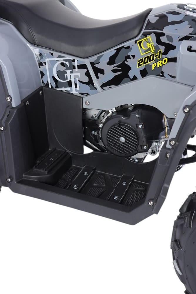 GT ATV K200-1 — это мощный и надёжный бензиновый квадроцикл, разработанный для активного использования в условиях бездорожья. Оснащённый 4-тактным двигателем объёмом 200 см³, он развивает мощность до 17 л.с. и способен разгоняться до 70 км/ч. Двигатель работает на обычном бензине и охлаждается воздушным способом, что обеспечивает простоту обслуживания и высокую надёжность даже при длительной эксплуатации.