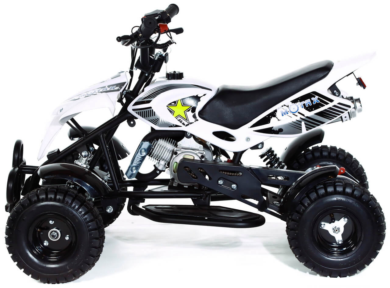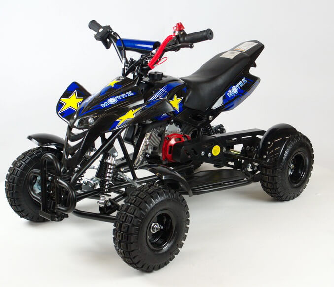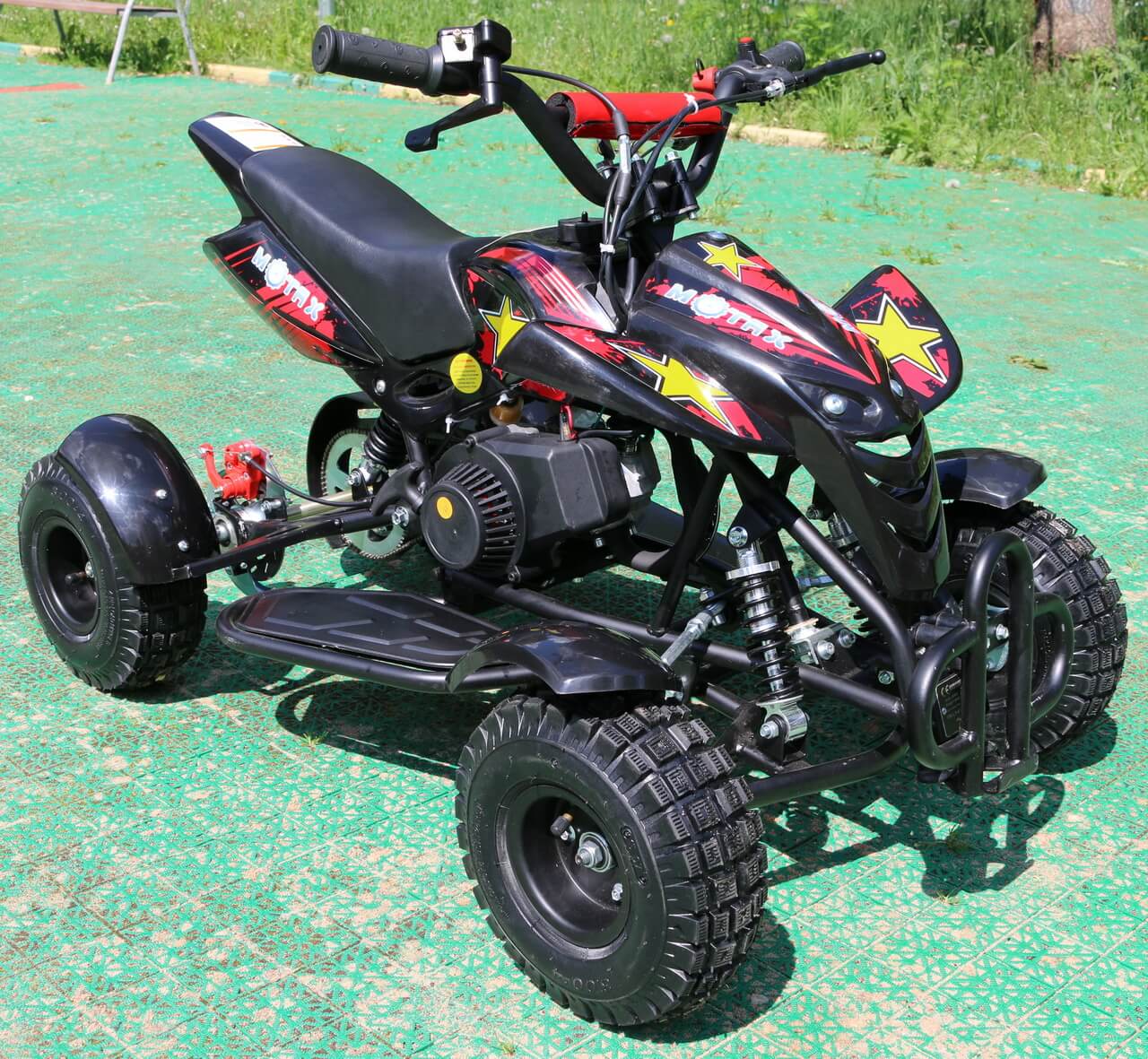 MOTAX ATV H4 mini-50 cc - компактный бензиновый квадроцикл, созданный специально для юных райдеров и начинающих водителей. Малогабаритный двигатель объемом 49 см³ с мощностью 3,5 л.с. обеспечивает максимальную скорость до 45 км/ч. Механический стартер гарантирует надежный запуск двигателя в любых условиях, а вместительный для своей категории бак на 1 литр обеспечивает достаточный запас хода. Нагрузка до 90 кг делает модель подходящей как для детей, так и для взрослых.