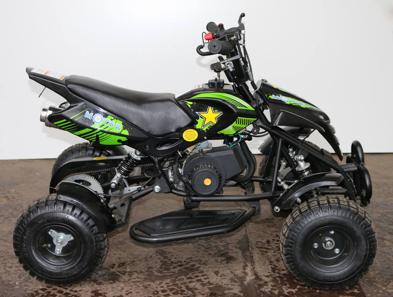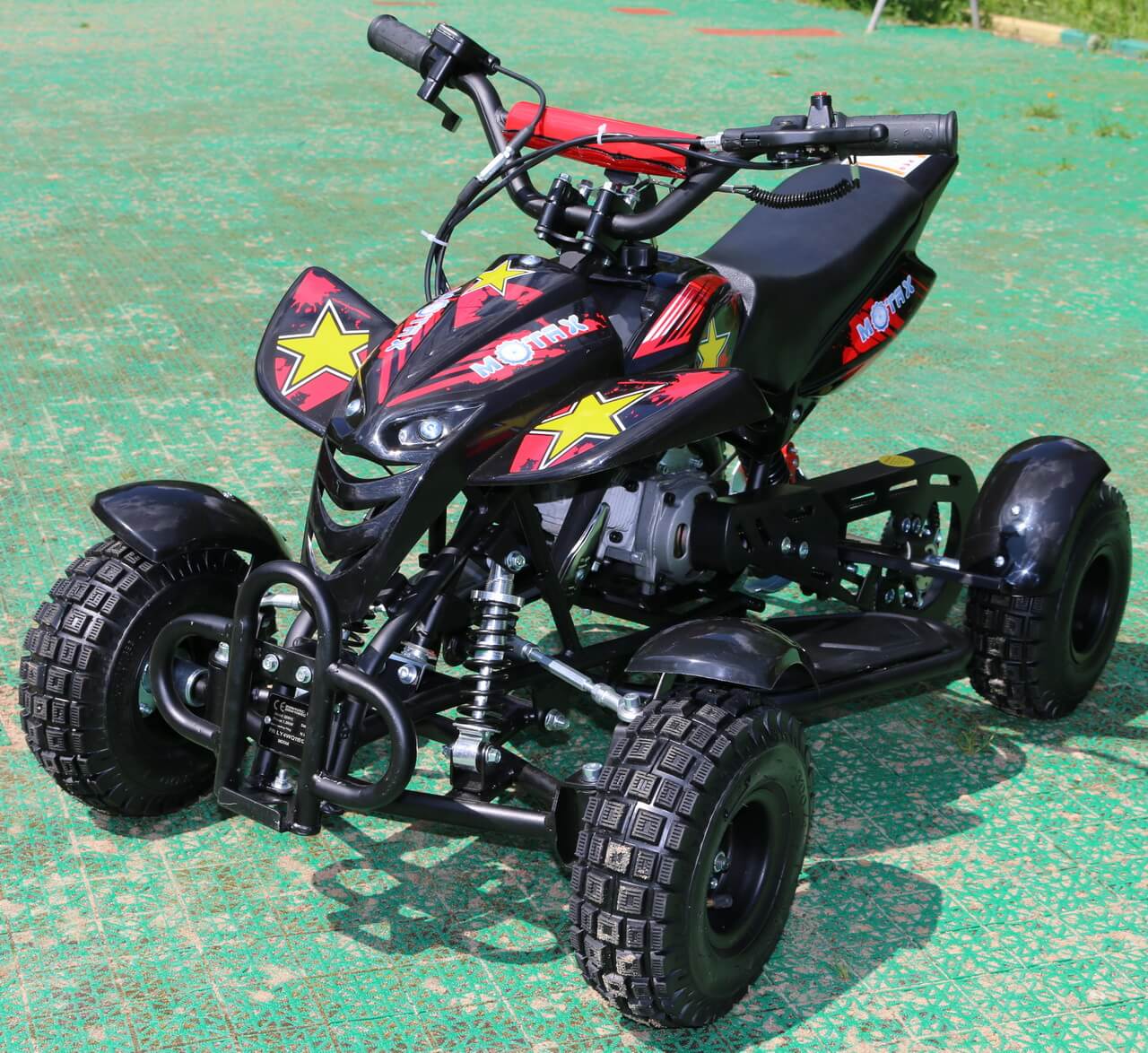 MOTAX ATV H4 mini-50 cc идеально подходит для использования в парках, дворах и на загородных участках. Простая конструкция и качественные компоненты обеспечивают минимальные затраты на обслуживание и долгий срок службы. Удобное расположение всех элементов управления делает каждую поездку комфортной и безопасной для юного водителя, предоставляя максимум удовольствия от каждой поездки.