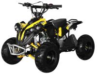 Конструкция квадроцикла базируется на прочной металлической раме с двухподвесной системой: моноамортизаторы спереди и сзади обеспечивают комфортное движение по различным типам покрытий. Крупные колеса диаметром 6 дюймов с широкими шинами (передние 4.10-6, задние 13x5.00-6) гарантируют отличное сцепление с поверхностью. Вес всего 43 кг делает квадроцикл достаточно легким для переноски при необходимости.