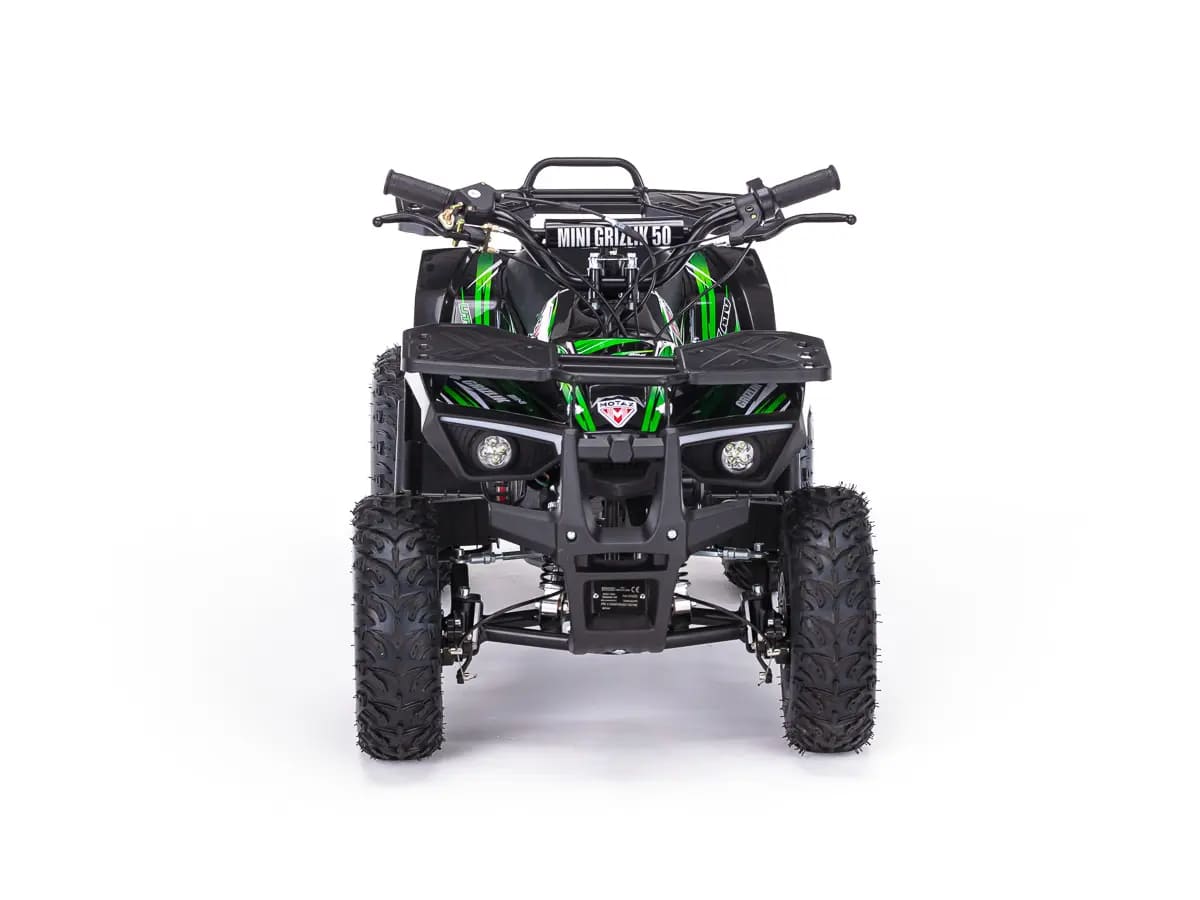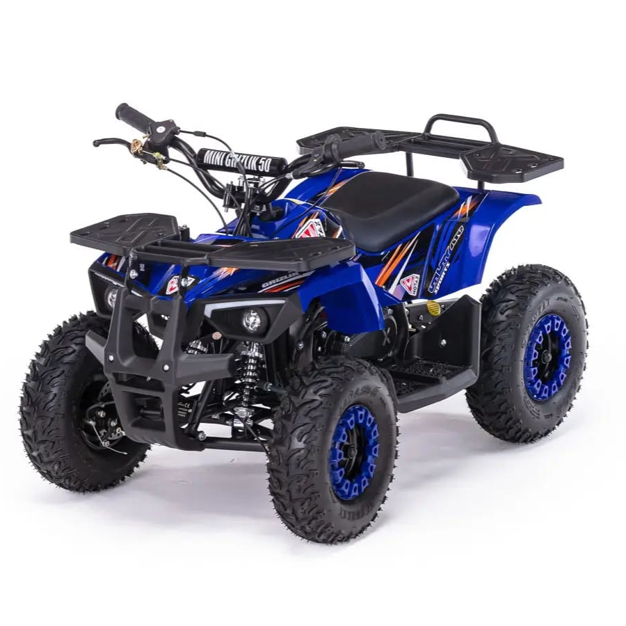 Детский бензиновый квадроцикл MOTAX GRIZLIK MINI ES BW - отличный выбор для юных любителей активного отдыха. Модель оснащена мощным одноцилиндровым двигателем объемом 49 см³ с карбюраторной системой подачи топлива и электростартером, что обеспечивает надежный запуск в любых условиях. Благодаря центробежному сцеплению и заднему приводу, квадроцикл развивает максимальную скорость до 45 км/ч, при этом способен выдерживать нагрузку до 60 кг.