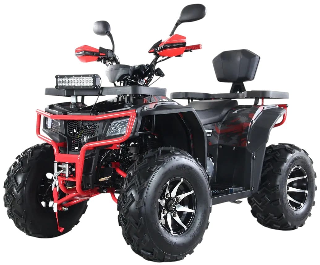 Безопасность движения обеспечивается эффективной тормозной системой с гидравлическими дисковыми тормозами как на передних, так и на задних колесах. Высота сиденья 78 см позволяет удобно разместиться как взрослым, так и подросткам. Масса квадроцикла составляет 194 кг, что делает его устойчивым при движении, а вместительный топливный бак объемом 5 литров обеспечивает продолжительную работу без дозаправки.