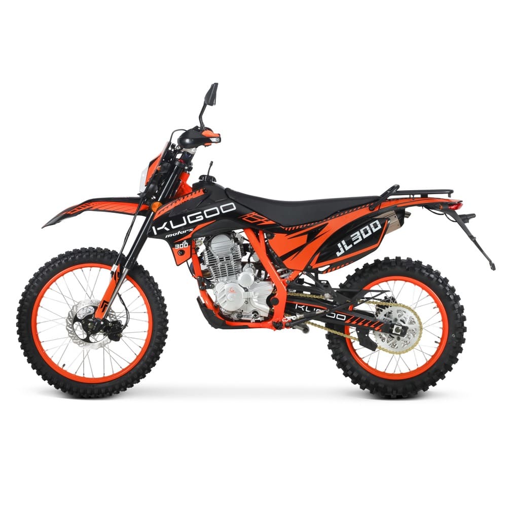 Kugoo JL-300 — это мощный и динамичный бензиновый питбайк, разработанный для уверенной езды по городу и легкому бездорожью. Двигатель объемом 300 см³ развивает мощность до 21.76 л.с., что позволяет разгоняться до высоких скоростей и комфортно чувствовать себя как на асфальте, так и на грунтовых трассах. Механическая трансмиссия обеспечивает плавное переключение передач и полный контроль над движением.