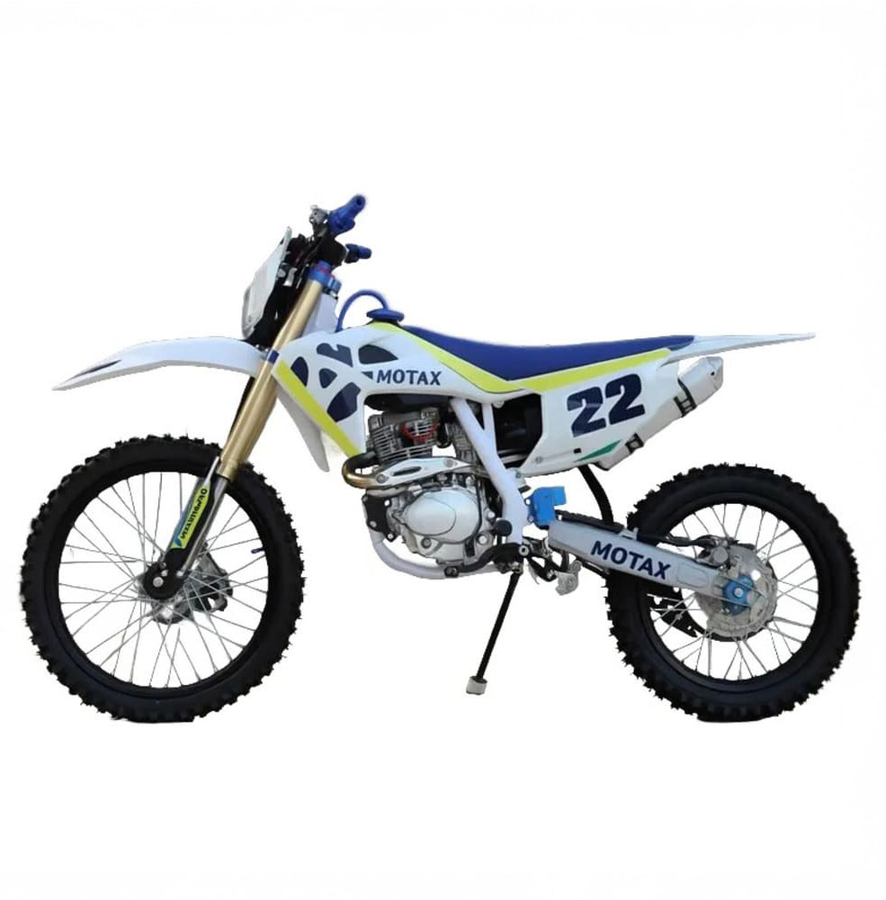 MOTAX XR 300 — это мощный бензиновый мотоцикл, созданный для езды по бездорожью и пересечённой местности. Оснащённый 4-тактным двигателем объёмом 271 см³ и мощностью 21 л.с., он развивает скорость до 105 км/ч, обеспечивая уверенную динамику на любом участке маршрута. Запуск двигателя осуществляется с помощью электростартера, что делает его удобным в повседневном использовании.