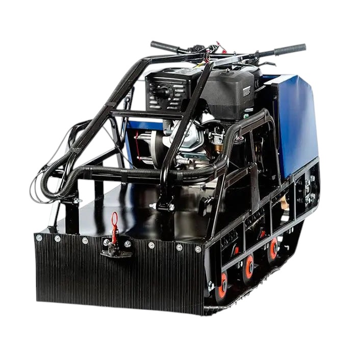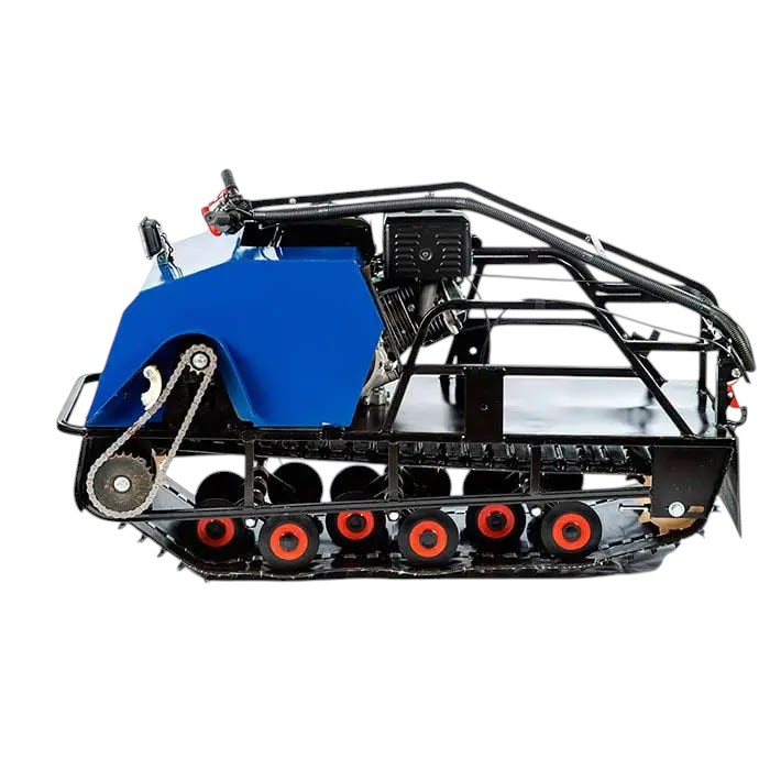 Трансмиссия выполнена на базе модернизированного вариатора «САФАРИ», обеспечивающего плавное ускорение и высокую надёжность при изменяющихся нагрузках. Привод — передний, а передняя подвеска — катковая, эффективно смягчающая удары по неровностям. Гусеница шириной 500 мм и длиной 1450 мм обеспечивает отличное сцепление со снегом и высокую проходимость даже в глубоких сугробах.