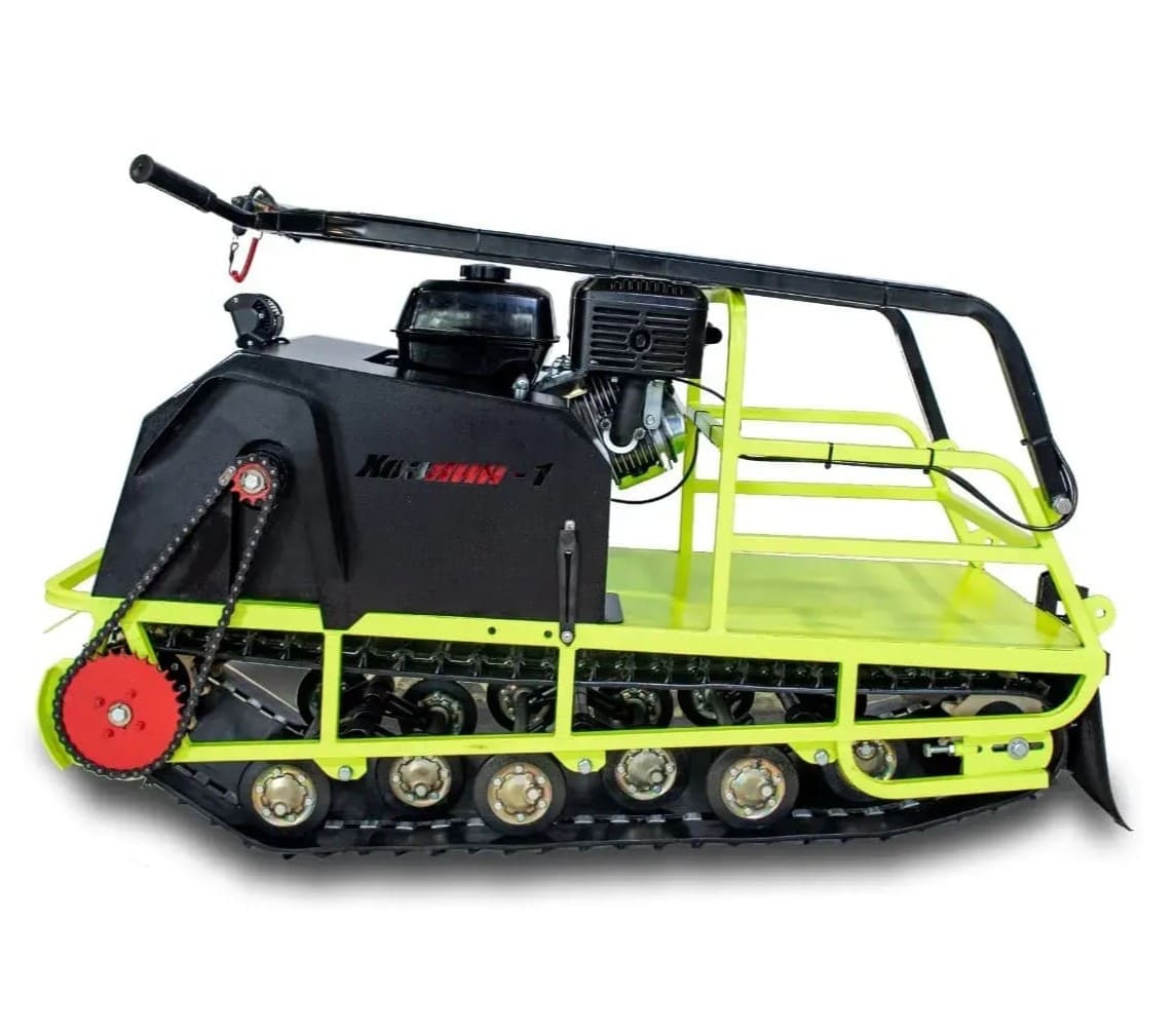 Трансмиссия выполнена на базе надёжного вариатора, обеспечивающего плавное ускорение без необходимости переключения передач. Привод — передний, что гарантирует хорошее сцепление со снегом и высокую проходимость по сложному рельефу. Максимальная скорость составляет 30 км/ч, что позволяет безопасно и эффективно перемещаться по заснеженным трассам, лесам и труднодоступным участкам.