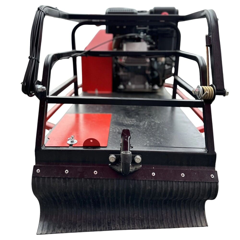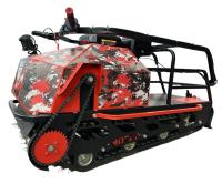 Мотобуксировщик оснащён широкой гусеницей размером 145 см в длину и 50 см в ширину, что обеспечивает превосходное сцепление с поверхностью и минимальное давление на снег. Передняя катковая подвеска эффективно смягчает удары от неровностей, обеспечивая плавность хода и комфорт водителю. Для безопасности установлены дисковые тормоза сзади, гарантирующие надёжную остановку даже под нагрузкой.