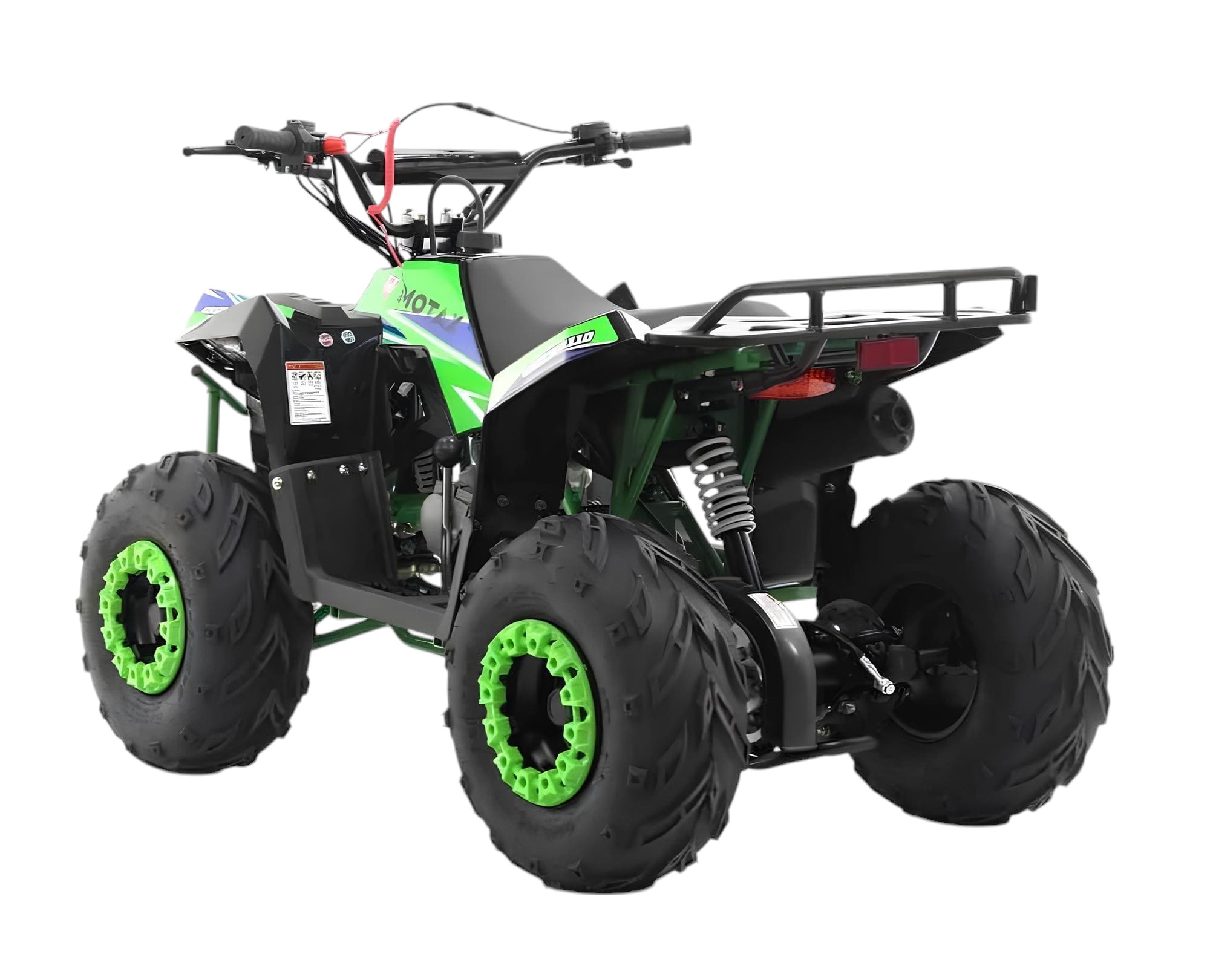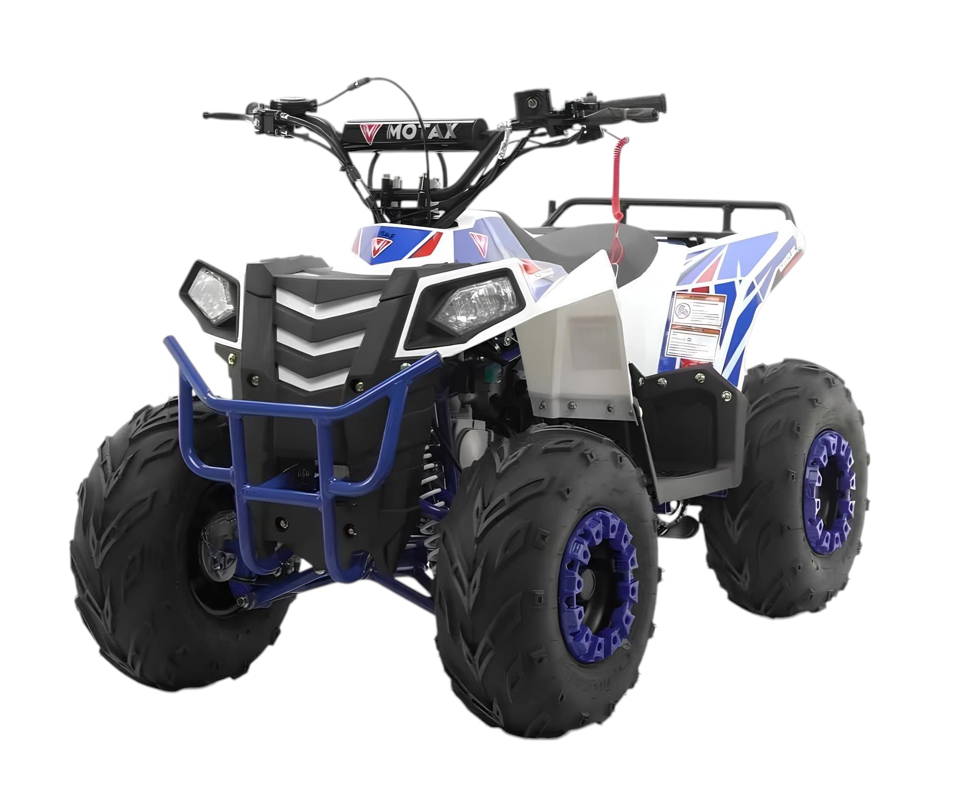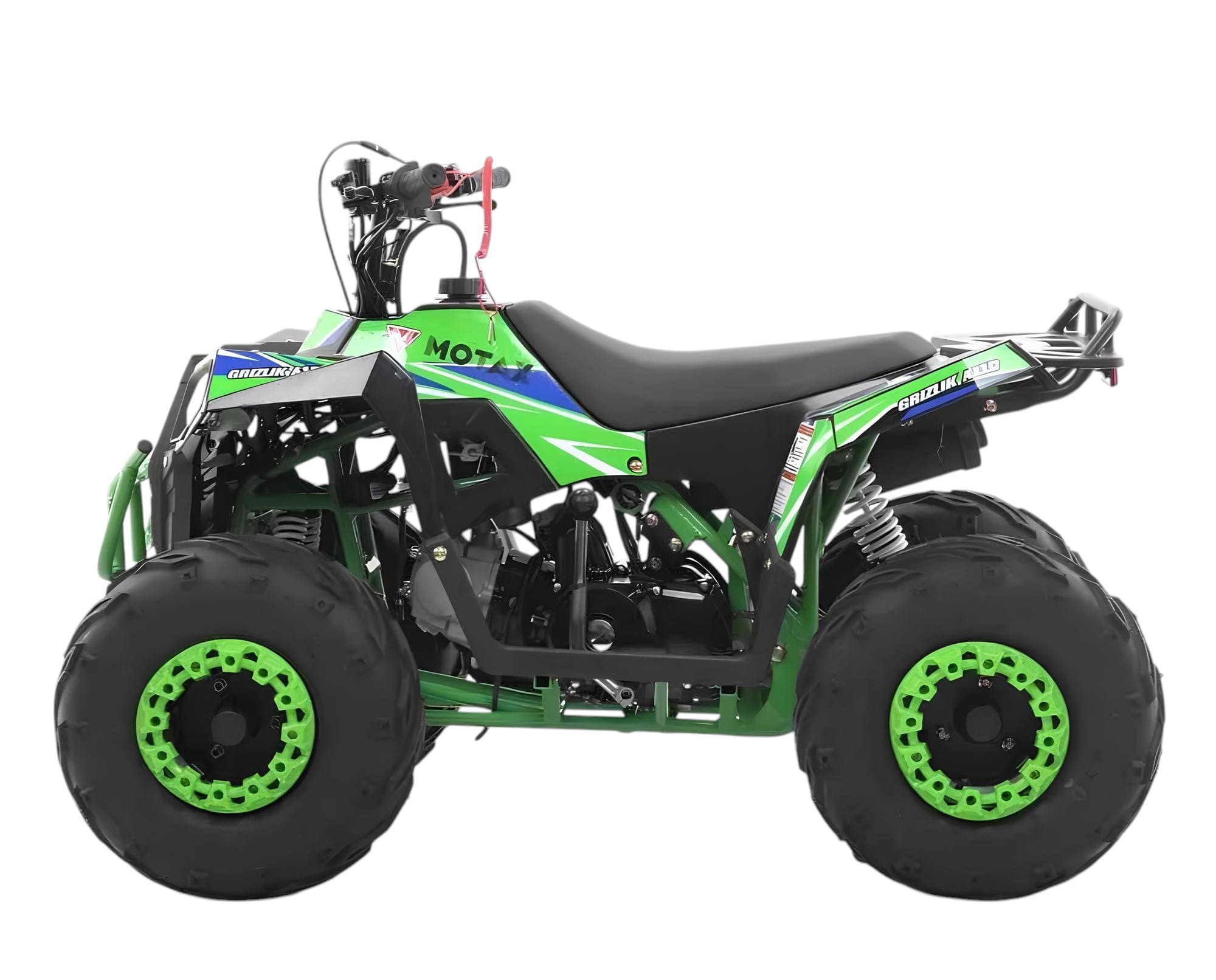 MOTAX GRIZLIK A110 - надежный бензиновый квадроцикл, созданный специально для детей и подростков в возрасте 6-14 лет. Модель оснащена мощным четырехтактным двигателем объемом 110 см³ и мощностью 7,5 л.с., обеспечивающим отличную динамику разгона. Особого внимания заслуживают высокоэффективные тормоза с легким ходом, что особенно важно для юных водителей. Полуавтоматическая коробка передач с тремя передними передачами и задним ходом обеспечивает простое и комфортное управление.