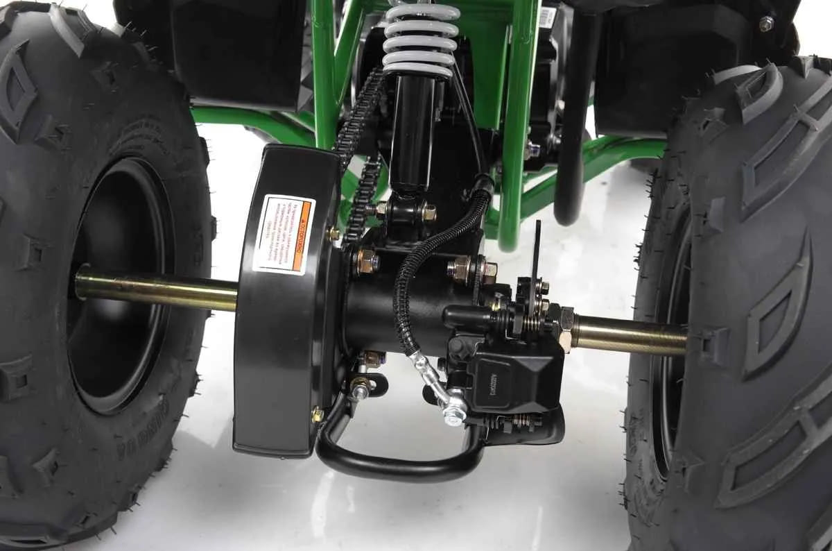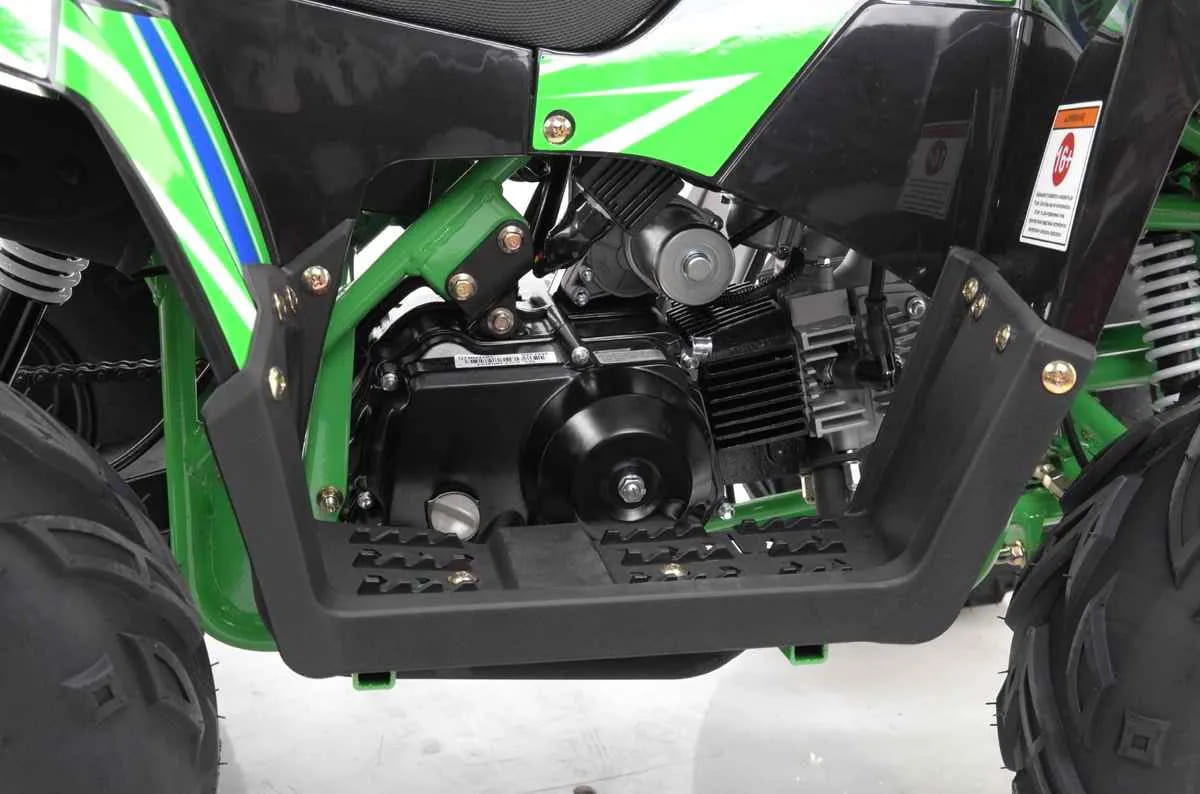 Квадроцикл способен развивать максимальную скорость до 50 км/ч при допустимой нагрузке 120 кг, что делает его подходящим как для детей, так и для взрослых. Воздушное охлаждение двигателя гарантирует его стабильную работу в различных условиях эксплуатации. Оптимальная высота сиденья 630 мм обеспечивает комфортную посадку для юных райдеров, позволяя им уверенно управлять техникой.