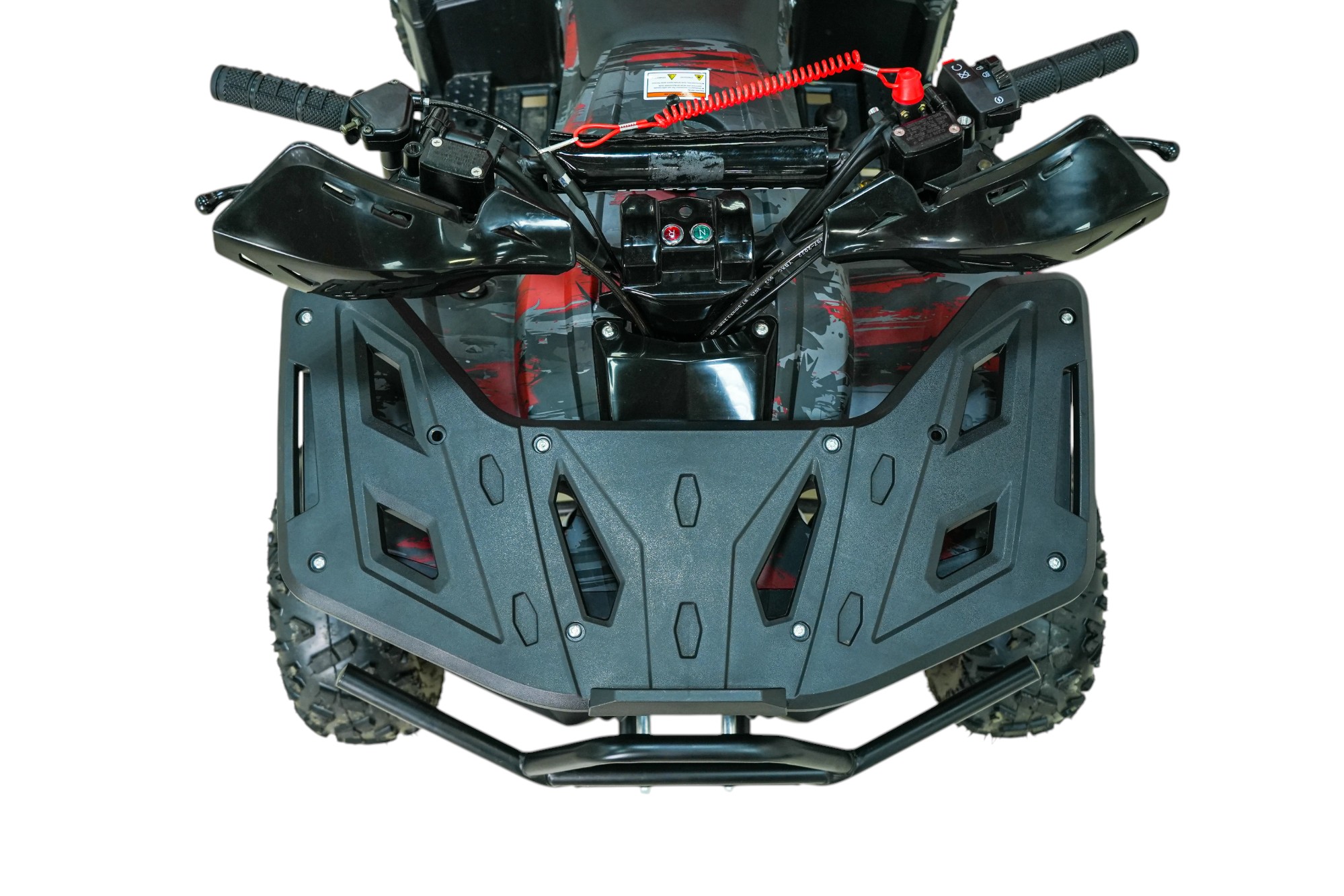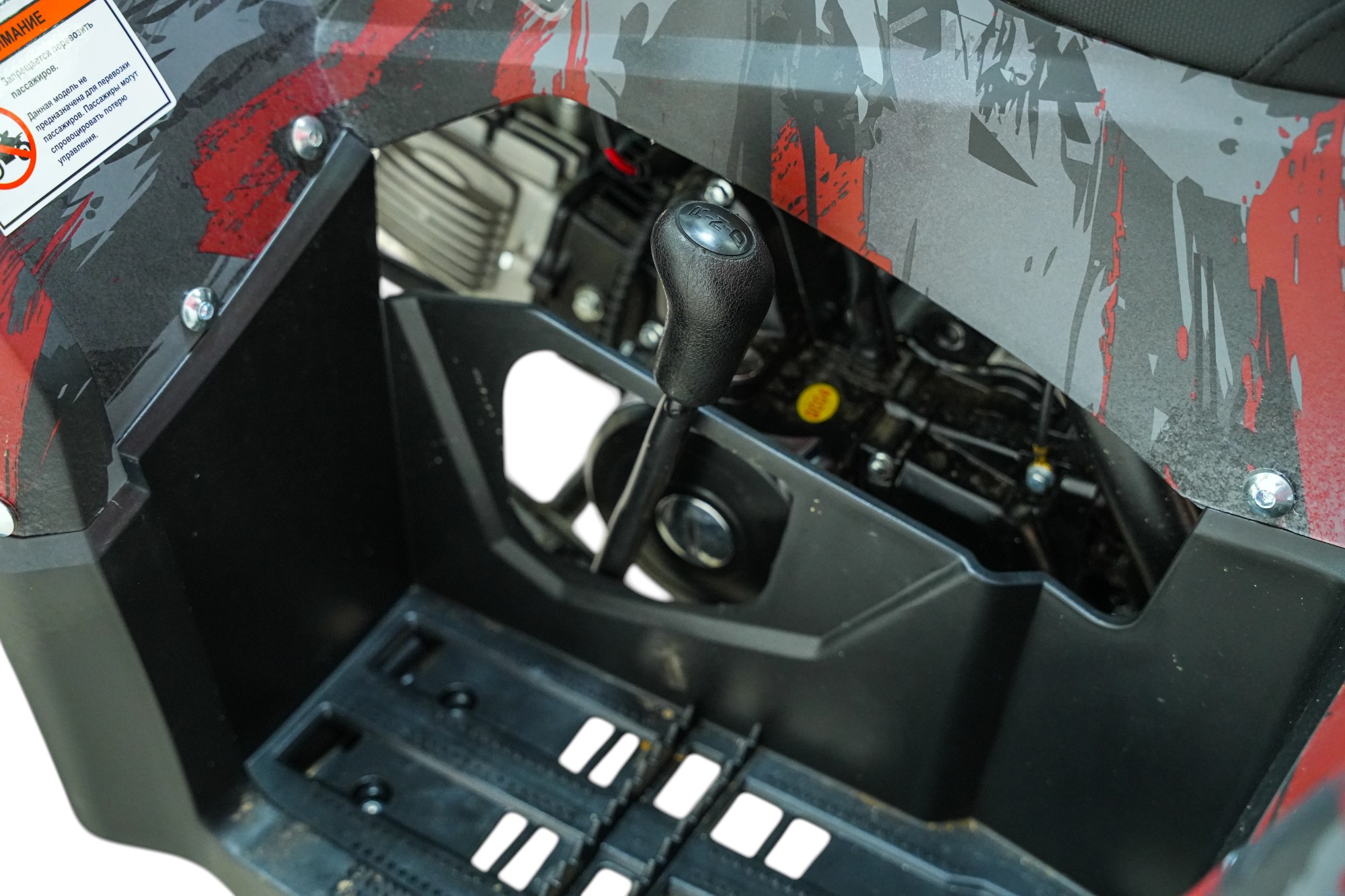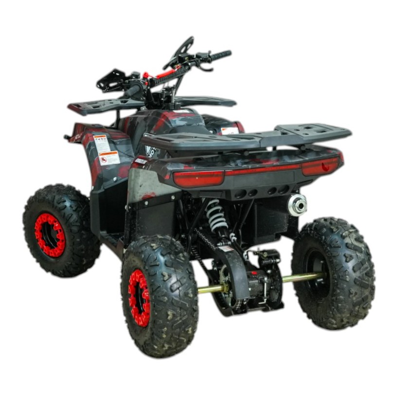 Квадроцикл работает на доступном бензине АИ-92 и имеет топливный бак ёмкостью 2 литра, рассчитанный на короткие поездки. Трансмиссия — полуавтоматическая, что упрощает процесс переключения передач и делает управление интуитивно понятным. Привод — задний, а прочная стальная рама обеспечивает долговечность и устойчивость конструкции. Общий вес модели составляет 102 кг.