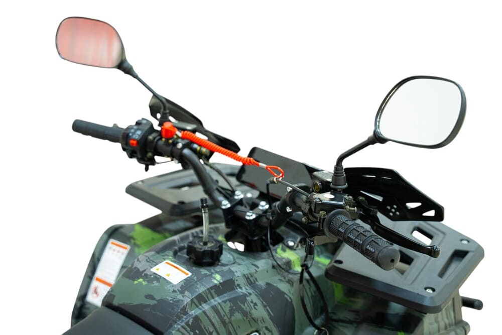 Квадроцикл работает на доступном бензине АИ-92 и имеет топливный бак ёмкостью 2 литра, рассчитанный на короткие поездки. Привод — задний, а прочная стальная рама обеспечивает надёжность и долговечность конструкции. Общий вес модели составляет 102 кг, что делает её лёгкой и маневренной, особенно на узких тропах и сложных участках маршрута.