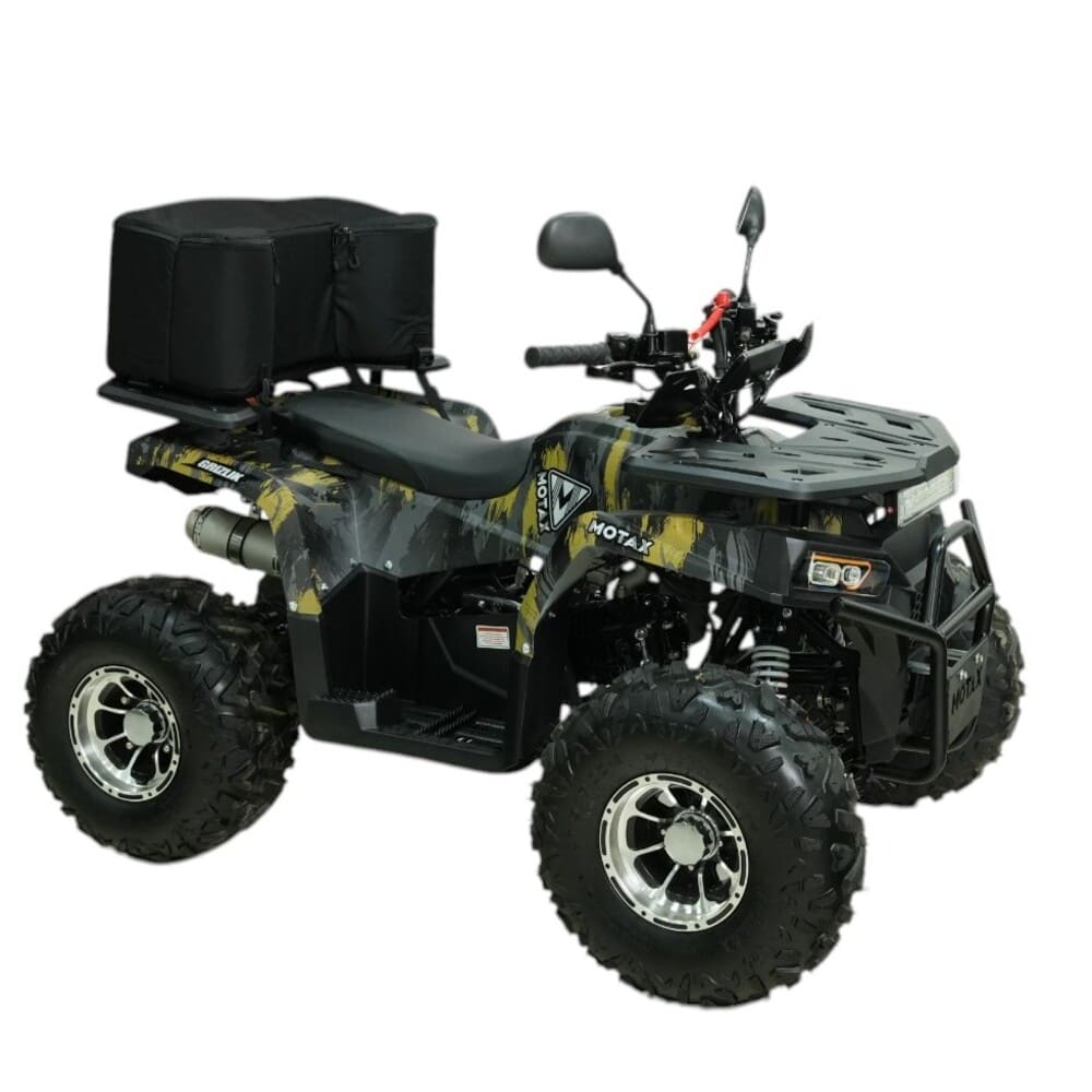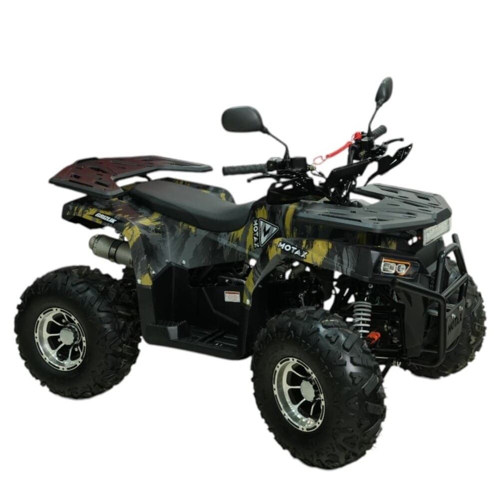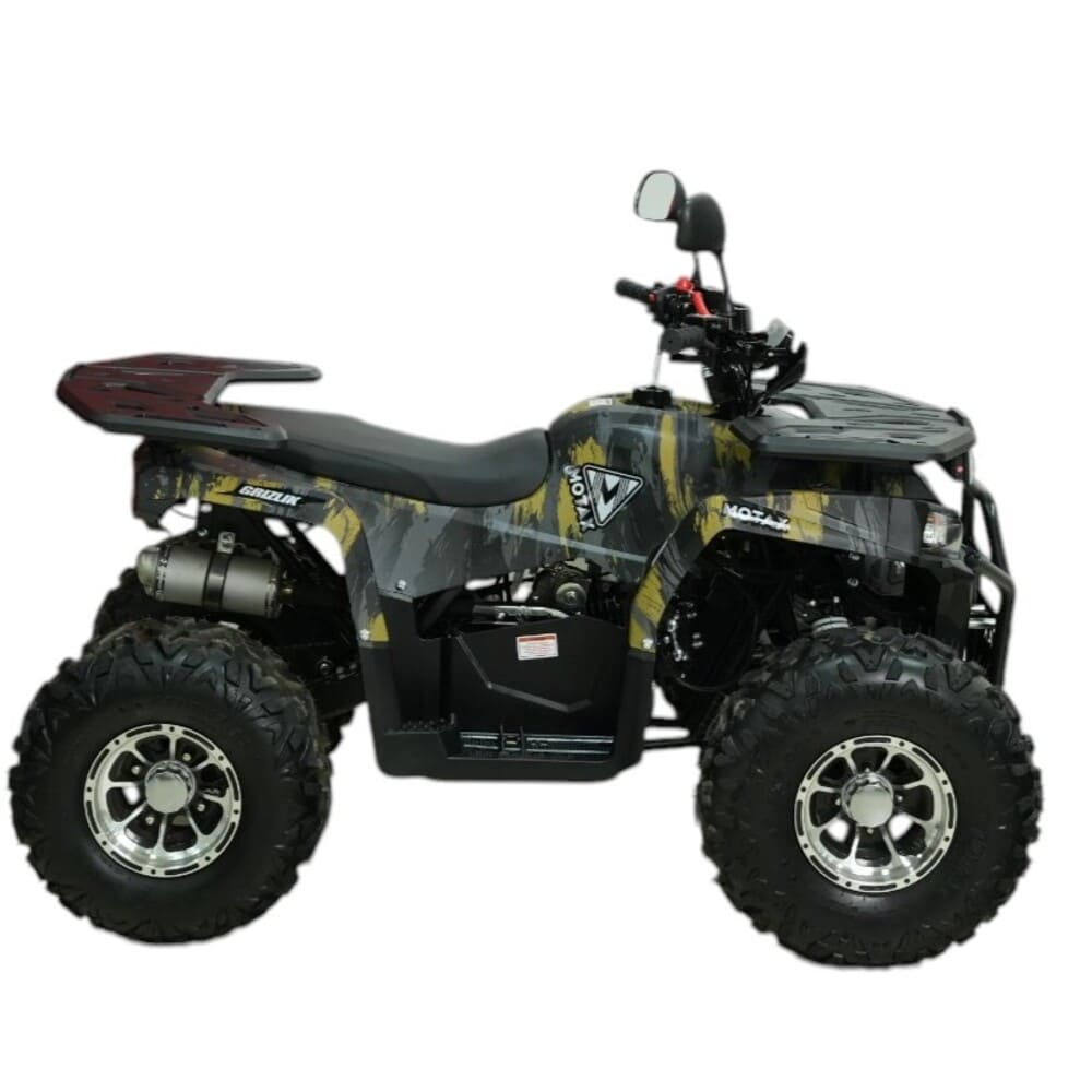 MOTAX GRIZLIK PREMIUM 150 — это усовершенствованный бензиновый квадроцикл, разработанный для уверенной езды по бездорожью и активного отдыха на природе. Оснащённый 4-тактным двигателем объёмом 140 см³ и мощностью 10 л.с., он развивает скорость до 60 км/ч, обеспечивая более динамичное ускорение по сравнению с базовыми моделями. Запуск двигателя осуществляется с помощью электростартера, что делает его удобным в любых погодных условиях.
