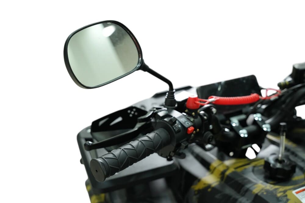 Для комфортной езды установлены двойной рычажный передний амортизатор и моноамортизатор сзади, которые эффективно смягчают удары от неровностей. Клиренс составляет 11 см, а колёса диаметром 8 дюймов с шинами 19×7-8 (спереди) и 18×9,5-8 (сзади) обеспечивают отличное сцепление на песке, грунте и траве, позволяя уверенно чувствовать себя в лесу и на пересечённой местности.