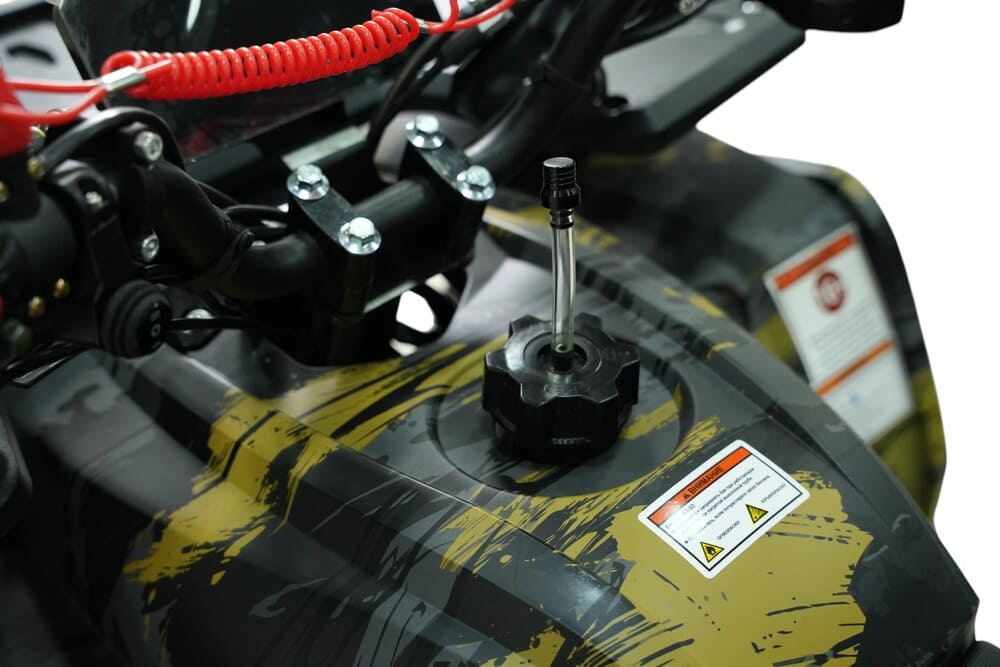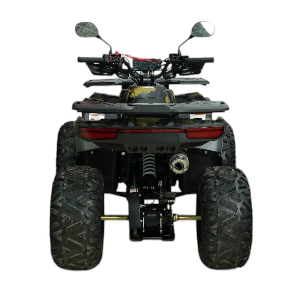 Квадроцикл работает на доступном бензине АИ-92 и имеет топливный бак ёмкостью 2 литра, подходящий для коротких маршрутов на дачу, охоту или рыбалку. Трансмиссия — полуавтоматическая, а привод — задний, что обеспечивает простое управление и хорошую проходимость. Прочная стальная рама и общий вес 102 кг обеспечивают маневренность и устойчивость даже на сложных участках пути.
