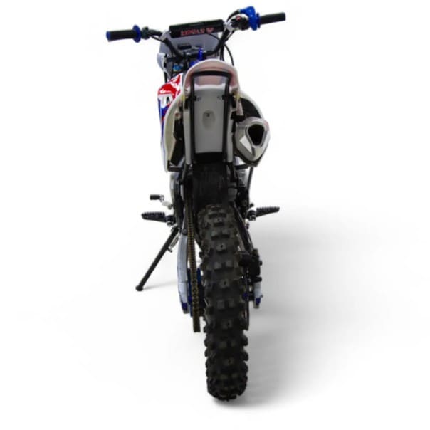 Питбайк оборудован пневмо-гидравлической вилкой спереди, обеспечивающей мягкую и предсказуемую работу подвески. Клиренс в 31 см позволяет свободно передвигаться по пересеченной местности. Для уверенности на трассе установлены дисковые тормоза: передние механические и задние гидравлические, гарантирующие надежное замедление в любых погодных условиях.