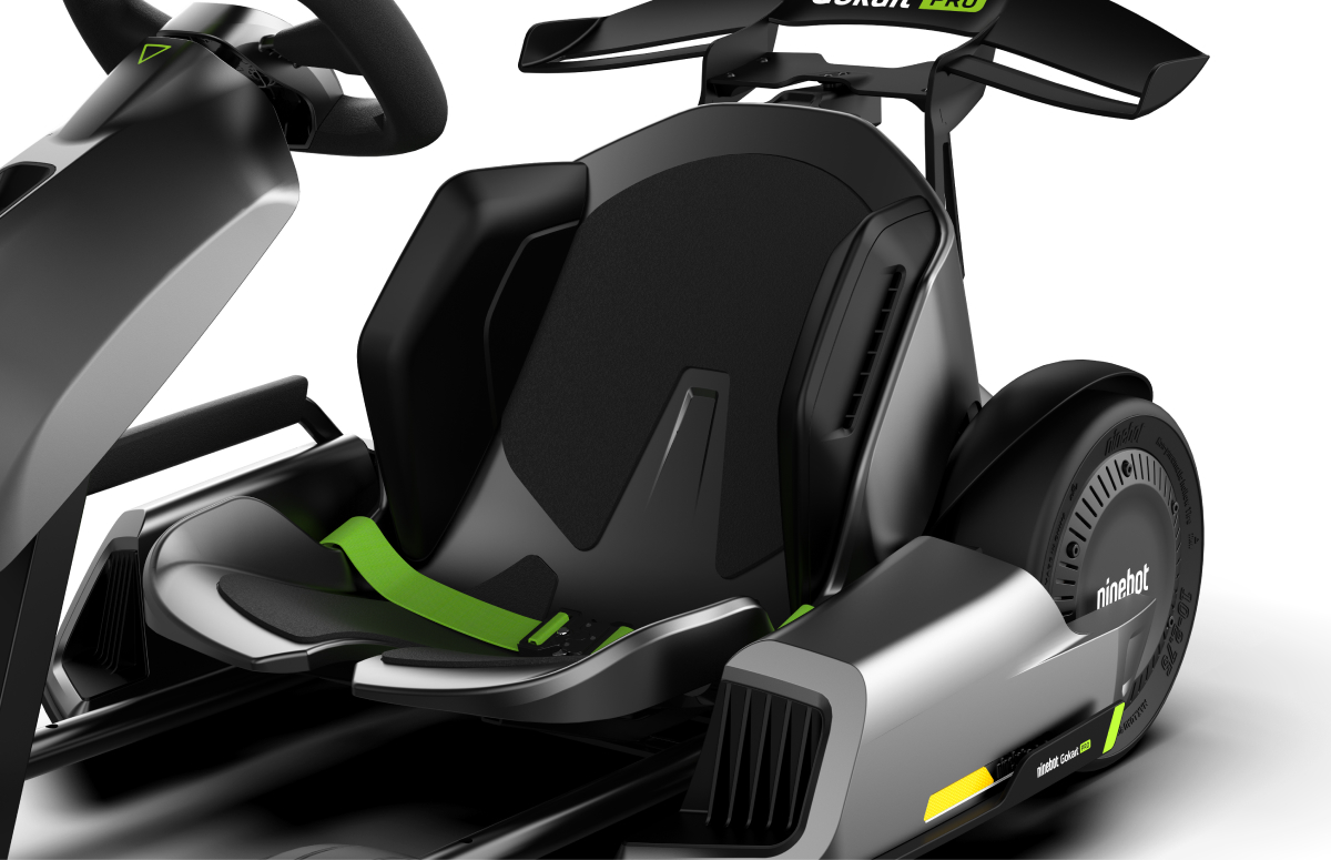 Прочная стальная рама снабжена трёхступенчатой защитой от столкновений, включая трубчатый каркас, вспененный полиуретан и внешний бампер из термопластичного эластомера. Эргономичное сиденье с боковыми поддержками и ремнём безопасности обеспечивает комфорт и безопасность. Складная конструкция позволяет удобно транспортировать Ninebot GoKart Pro в багажнике автомобиля, делая его доступным для приключений в любом месте. С четырьмя режимами движения, включая безопасный, обычный, спортивный и гоночный, пользователь может выбрать подходящий уровень скорости в зависимости от своего опыта.