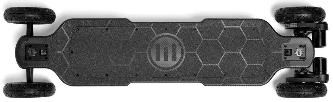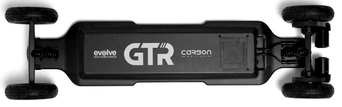 Дека Carbon GTR изготовлена вручную из 100%-го углеродного волокна и полностью скрывает всю электронику. Доска питается от новых литий-ионных аккумуляторов, изготовленных по запатентованной технологии PowerFlex на базе лучших батарей типа 18650 - Samsung и Sony. Им под силу проехать до 30 км на одном заряде и превратить ухабистую дорогу или лесную тропинку в бесконечное удовольствие. В сочетании с Bluetooth связью это обеспечивает моментальный разгон и плавное торможение, управление электроскейтом Evolve становится интуитивным. «Сердце» доски – два бесщеточных двигателя общей мощностью 3000 Вт, которые приводят в движение 7-дюймовые пневматические шины повышенн