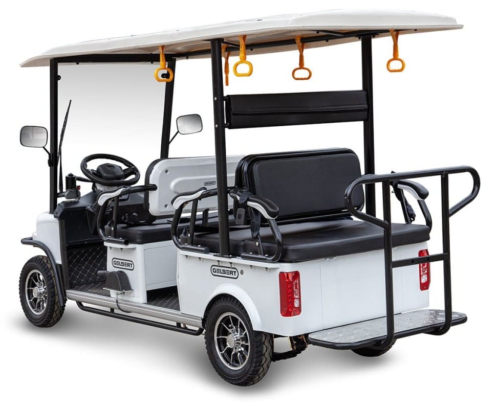Габаритные размеры составляют 2960×1000×1750 мм, а вес конструкции — 210 кг. Прочная стальная рама гарантирует долговечность даже при интенсивной эксплуатации. Gelbert Fact идеально подходит для гольф-клубов, отелей, парков, выставочных центров, загородных баз отдыха и промышленных объектов. Это экологичный, экономичный и практичный транспорт для эффективного перемещения персонала и гостей.