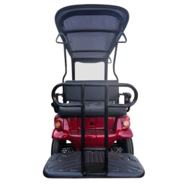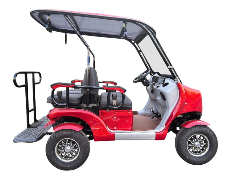 Гольфкар рассчитан на максимальную нагрузку до 300 кг и оснащён двумя рядами сидений по схеме 2+2, обеспечивая удобную посадку для четырёх человек. На приборной панели установлен LED спидометр, отображающий текущую скорость. Конструкция включает дифференциал в трансмиссии, что улучшает проходимость и маневренность, особенно на поворотах и неровных поверхностях.