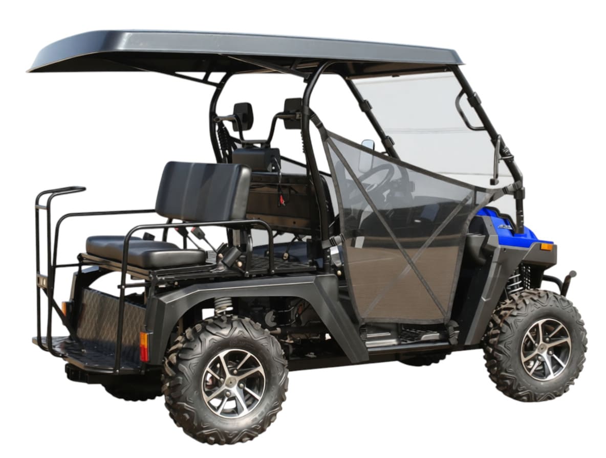 Одной из ключевых особенностей является возможность трансформации: гольфкар можно легко переоборудовать в компактный UTV. Это достигается за счёт замены заднего ряда сидений на грузовой отсек бесплатно или установки дополнительного комплекта (крыша + платформа) за 100 000 рублей. Также доступна функция Smart Connect — система подключения прицепа к бортовой сети, что расширяет возможности перевозки грузов и оборудования.