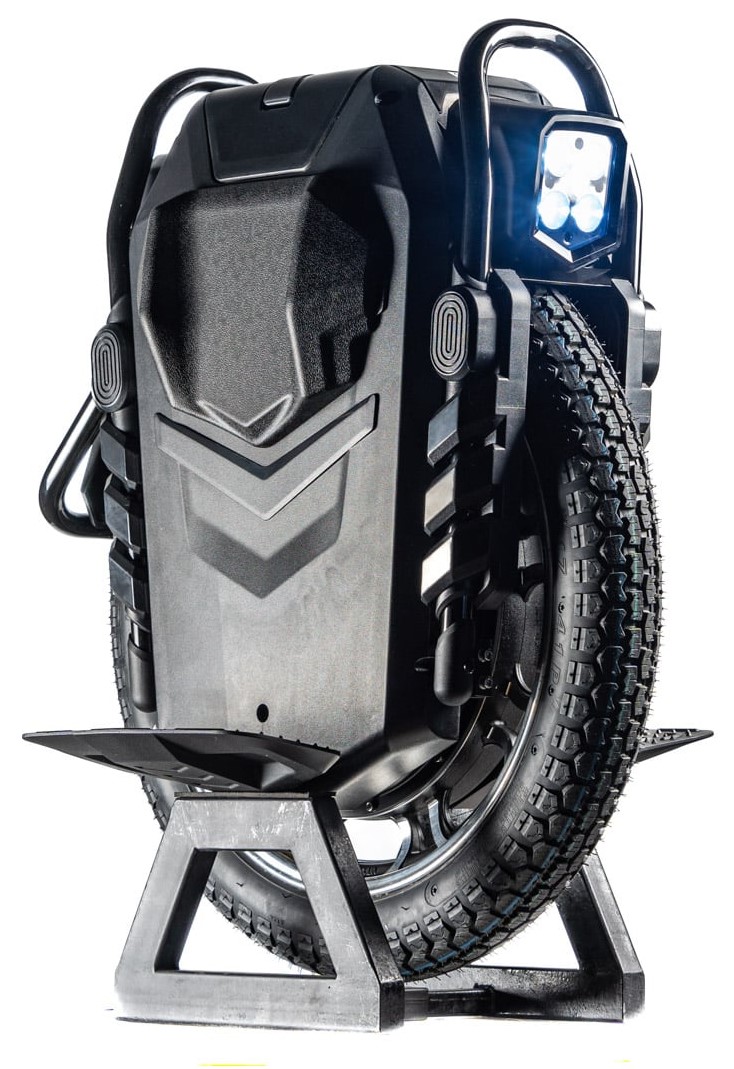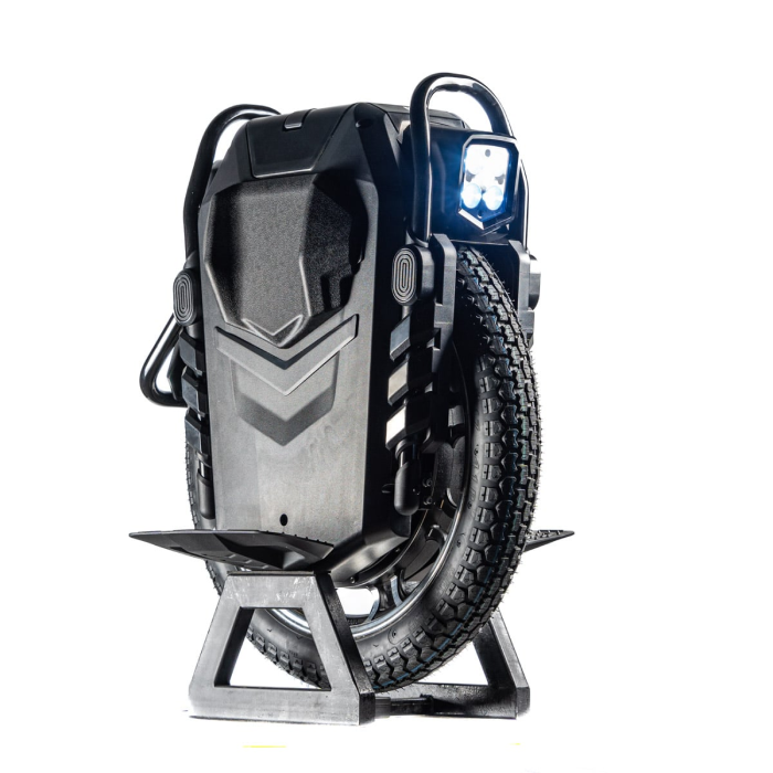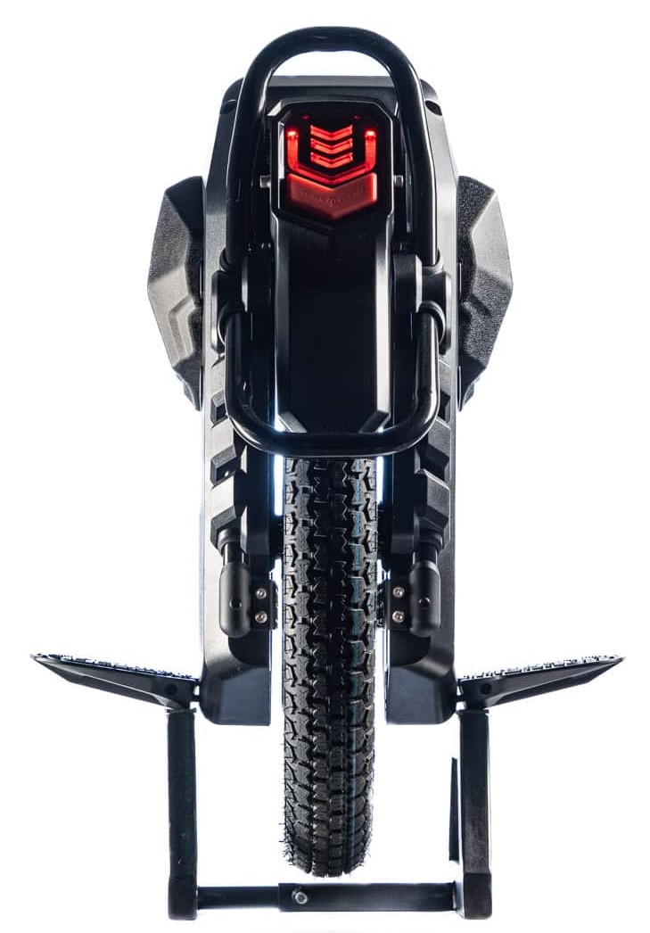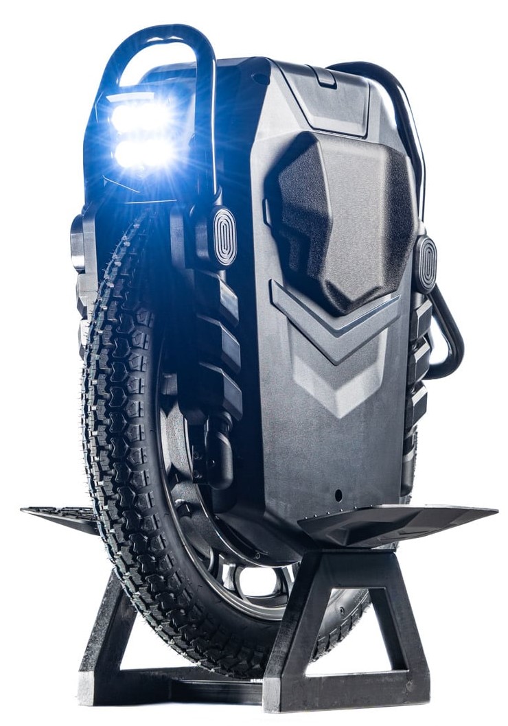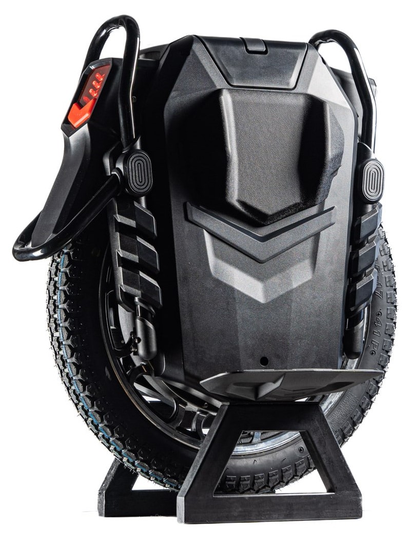 В передней части моноколеса расположена четырехглазая фара с регулируемым углом. ЖК-дисплей позволяет отслеживать основные параметры и управлять функциями моноколеса, включая регулировку режима жесткости, подъем педалей и другие функции. Дисплей хорошо читается в темное время благодаря подсветке и не бликует на солнце. В комплекте с моноколесом поставляются заводские подушки, обеспечивающие более комфортное управление. Размер покрышки составляет 2.75 на 17", что является мотоциклетным (автомобильным) размером, а внешний диаметр колеса составляет 22.5". На самой покрышке содержится полезная справочная информация, такая как вес, давление и др.