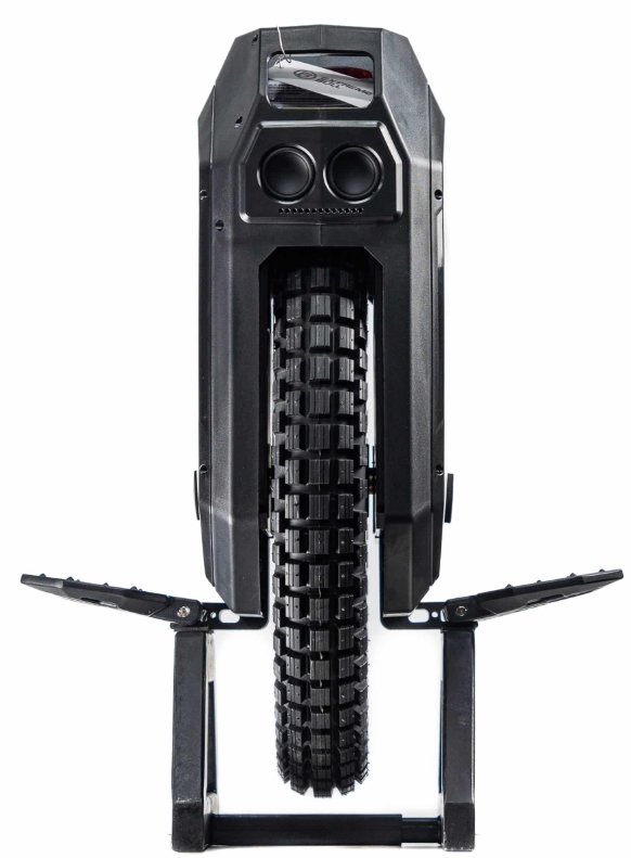 Моноколесо оснащено мощной и яркой сдвоенной фарой в передней части. Ручка снабжена кнопкой включения, а под фарой расположены отверстия для воздухозабора. Комплект моноколеса включает заводские подушки, что обеспечивает более комфортное управление этим монстром. Покрышка CST размером 2.75 на 14″ обеспечивает максимальную нагрузку 121 кг и имеет давление 2.25 bar.