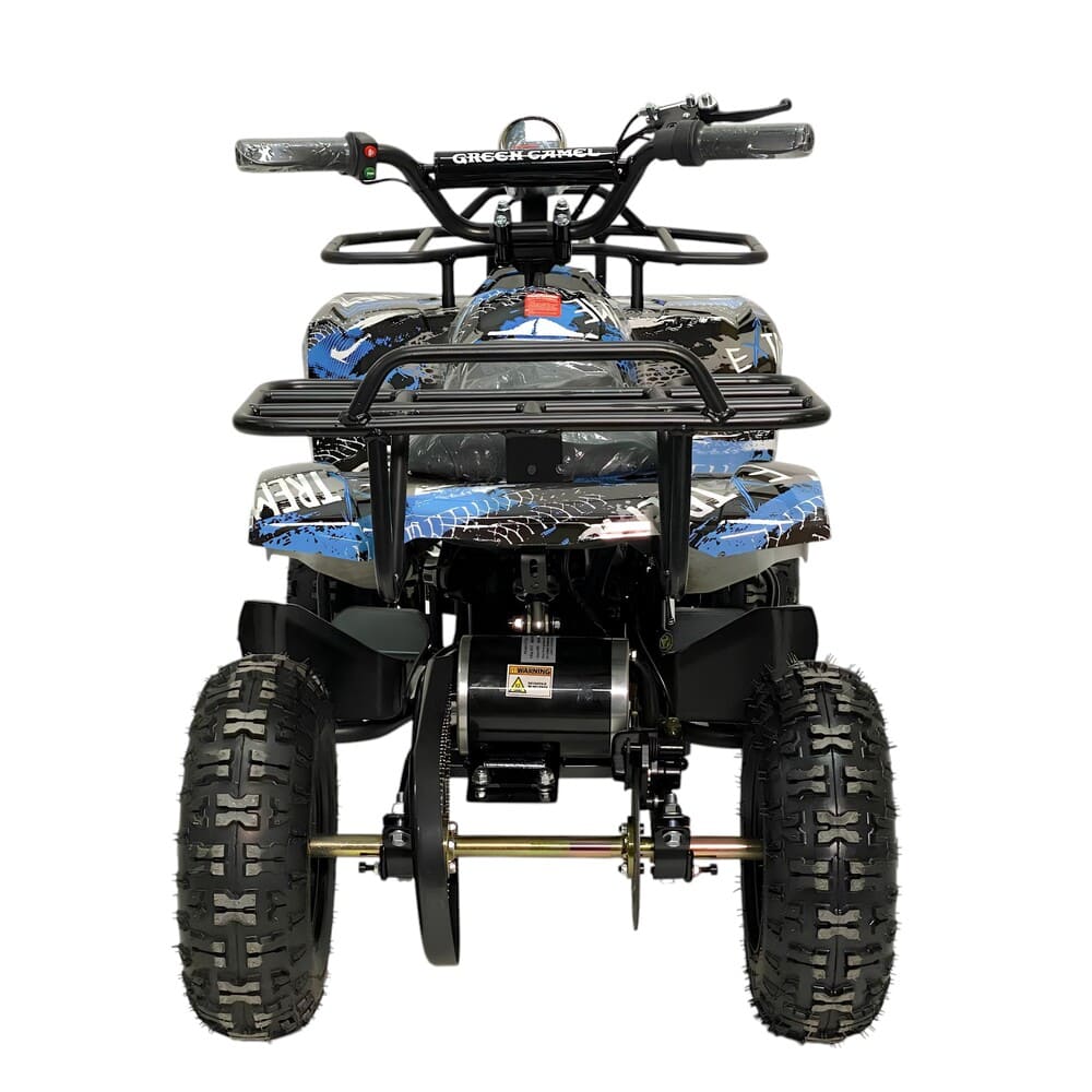 Особое внимание уделено безопасности: комплектация включает два пульта-брелока сигнализации, которые позволяют дистанционно управлять квадроциклом, активировать поиск и ставить его на охрану. Прочный корпус и качественные компоненты обеспечивают долгий срок службы даже при интенсивной эксплуатации. Колеса R6 с цепным приводом обеспечивают отличную проходимость и маневренность.