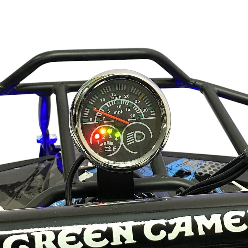 Модель оснащена продвинутой системой торможения: передний ножной гидравлический тормоз и задний механический дисковый обеспечивают безопасное управление. Подвеска с четырьмя пружинными амортизаторами гарантирует комфортную езду по различным поверхностям. Трехскоростной ключ-переключатель родительского контроля (L-N-H) позволяет регулировать мощность в зависимости от возраста и опыта ребенка. Дополнительные функции включают спидометр и удобную систему запуска двигателя с рычагом переключения движения.