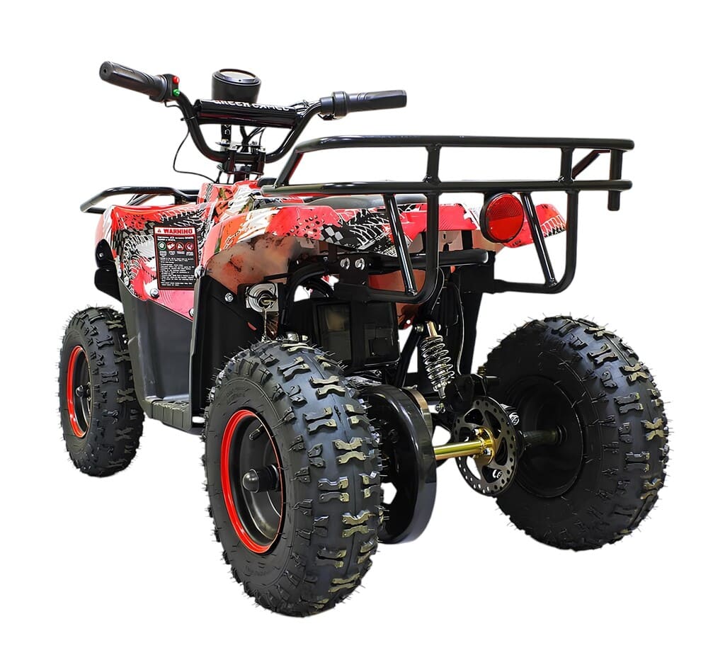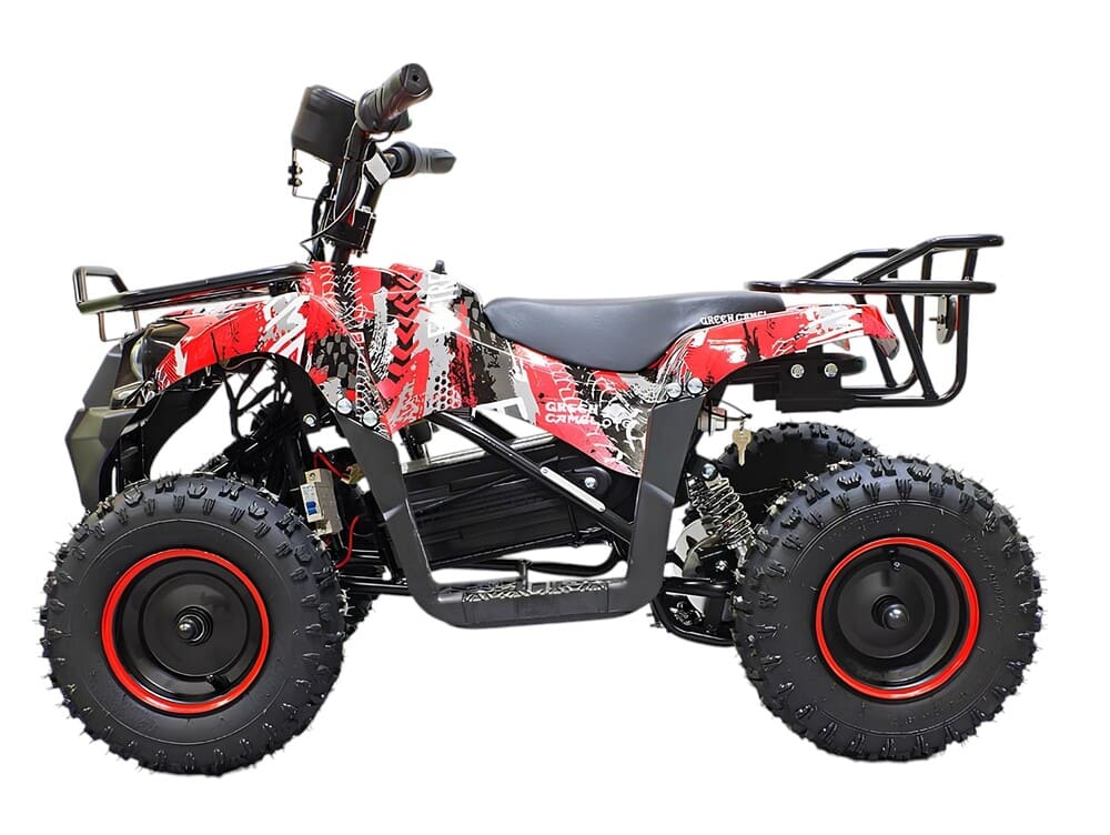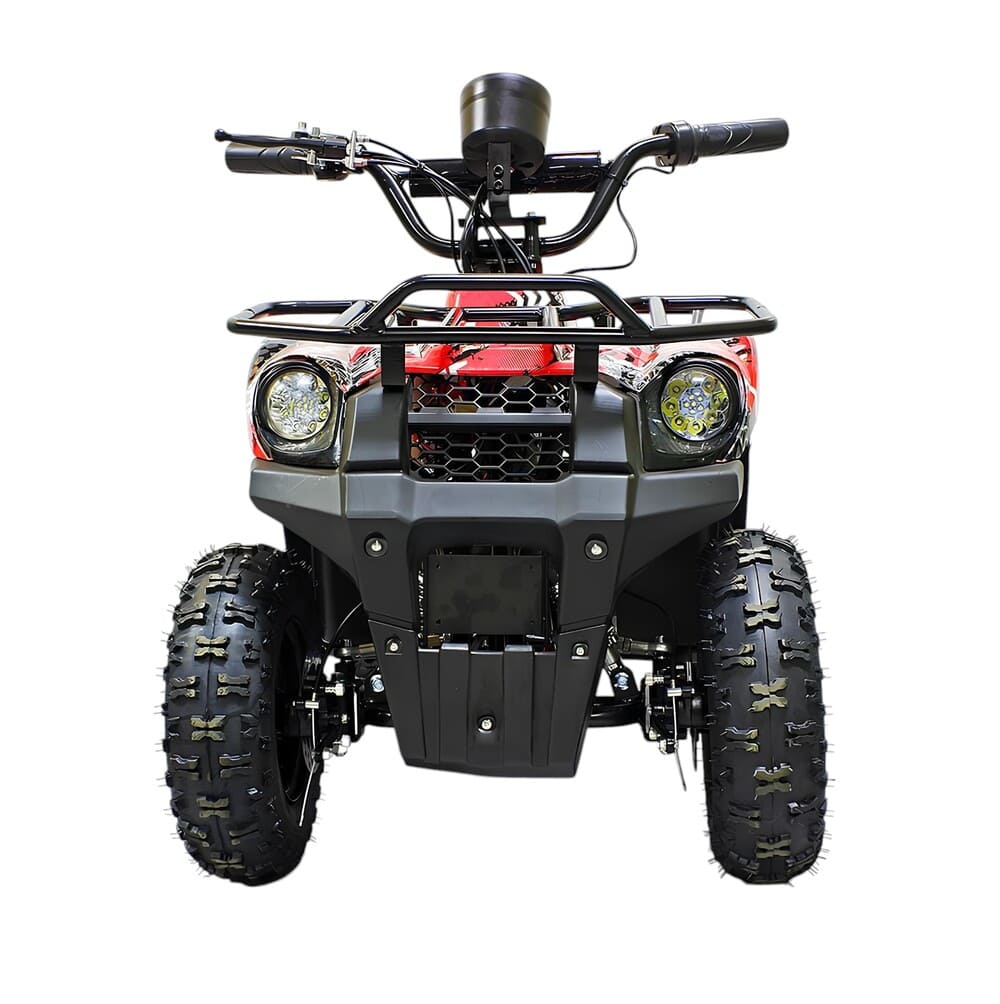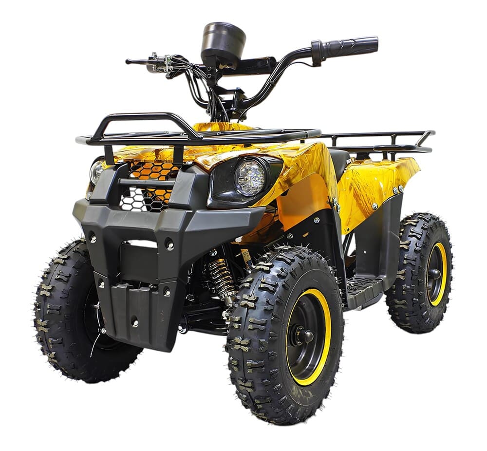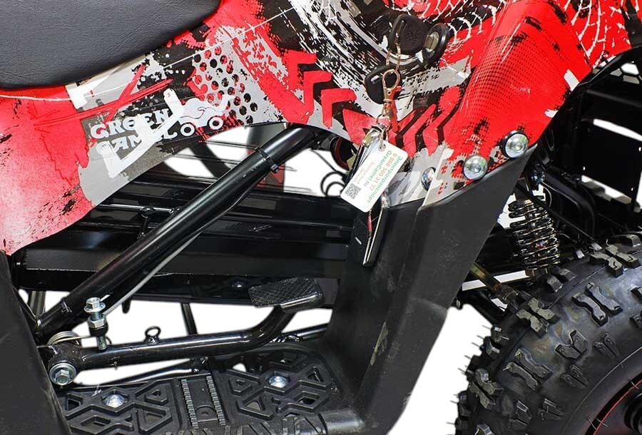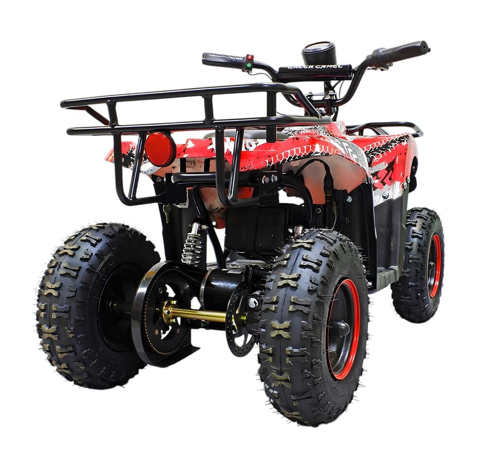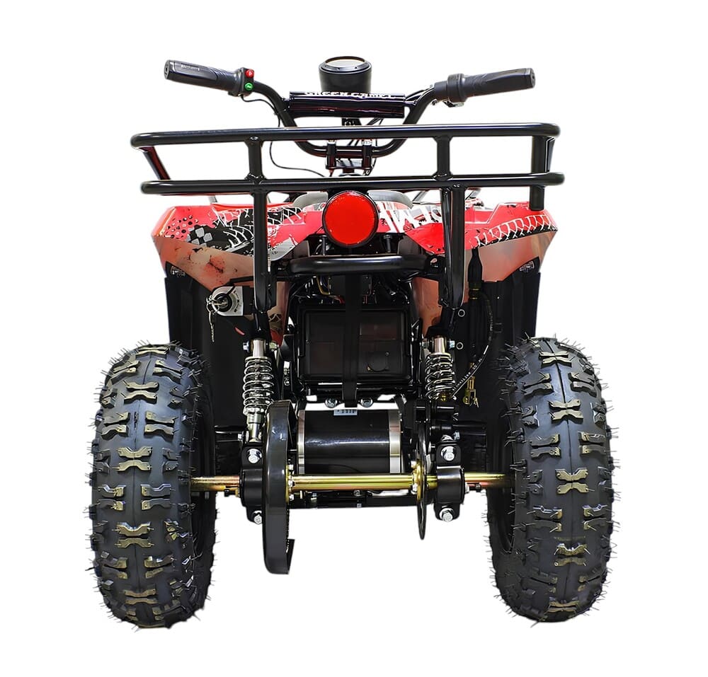 Квадроцикл оснащен мощным мотором 36V 800W с цепным приводом, что обеспечивает стабильную работу и надежность техники. Колеса размером R6 гарантируют устойчивость и комфортное передвижение со скоростью до 20 км/час. Для безопасного использования предусмотрен цифровой спидометр, термобиметаллический предохранитель от перегрузки и пульт дистанционного отключения. Задний тормоз теперь также выполнен в виде ножного гидравлического механизма.