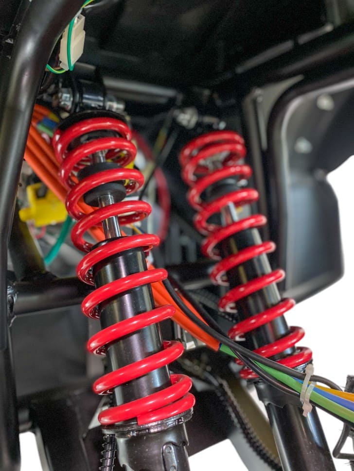 Благодаря системе двойных амортизаторов сзади и доработанной подвеске, квадроцикл обеспечивает комфортную езду даже при максимальной нагрузке 150 кг. Гелевый аккумулятор SLA Chilwee емкостью 32 Ач и напряжением 60V обеспечивает запас хода до 40 км на одном заряде, а время полной зарядки составляет 8 часов. Ресурс батареи достигает 700 циклов зарядки-разрядки.
