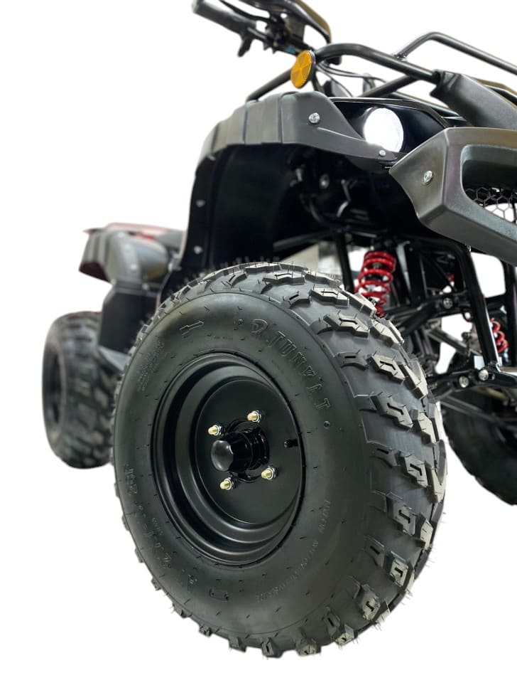 Квадроцикл комплектуется надежным BLDC-мотором и дифференциалом на заднюю ось, что обеспечивает отличную проходимость и устойчивость. Колеса R10 с дорожным просветом 190 мм позволяют уверенно передвигаться по различным типам покрытий. Длина колесной базы 1160 мм обеспечивает стабильность при движении как по ровным дорогам, так и бездорожью.