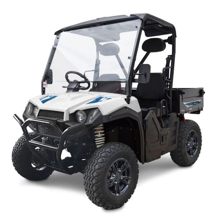 Безопасность движения гарантируют дисковые гидравлические тормоза спереди и сзади. Модель рассчитана на максимальную нагрузку 150 кг и развивает скорость до 40 км/ч. Общий вес UTV составляет 676 кг, что обеспечивает устойчивость при движении даже на сложных участках дороги.