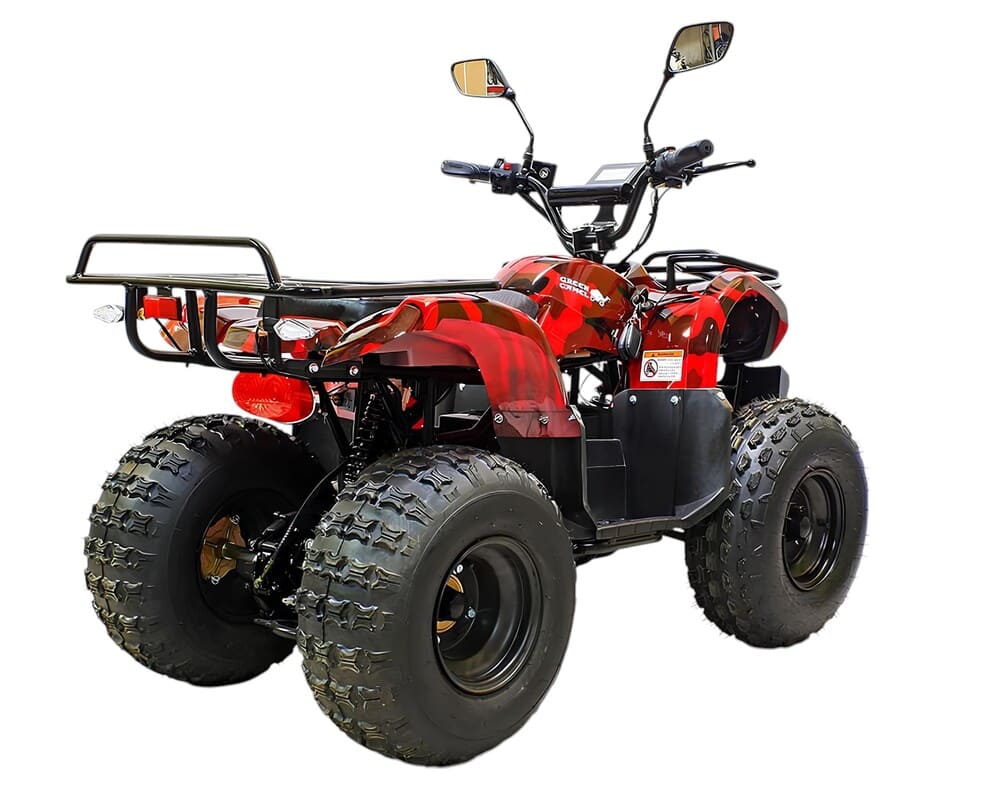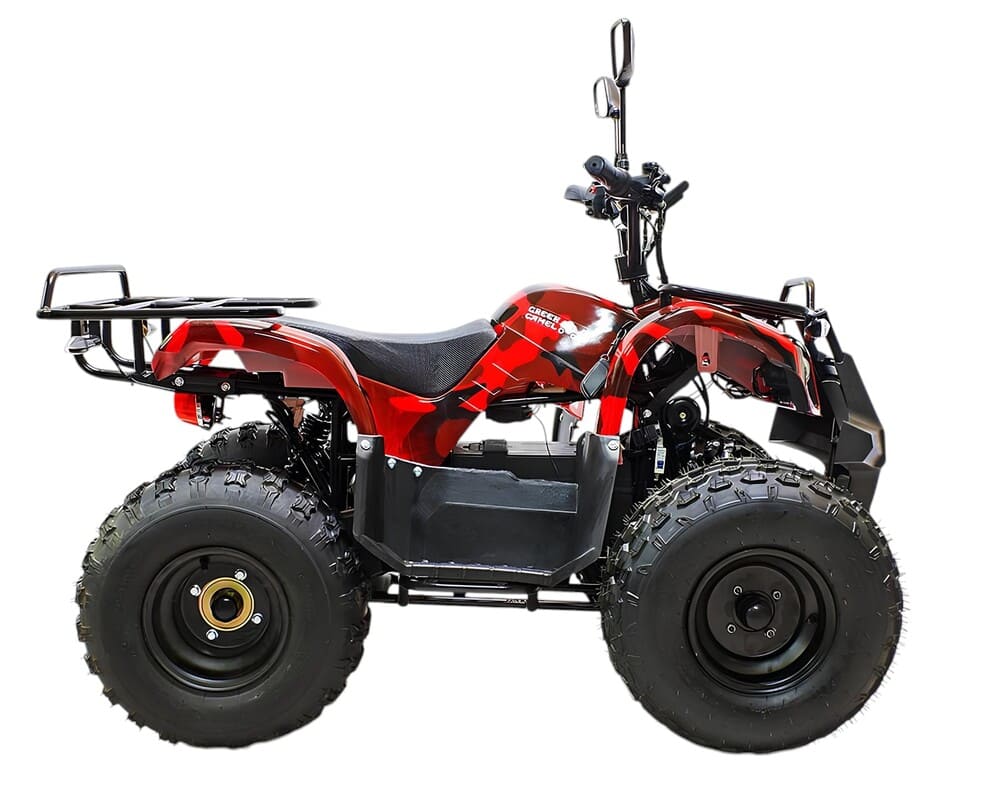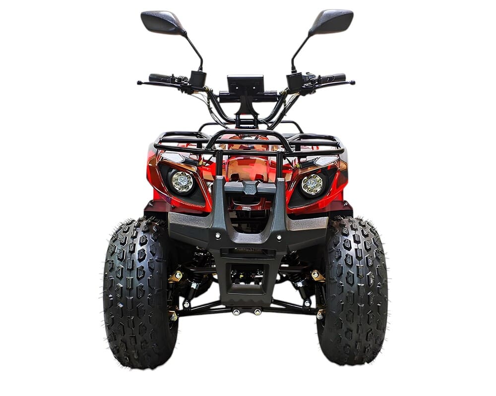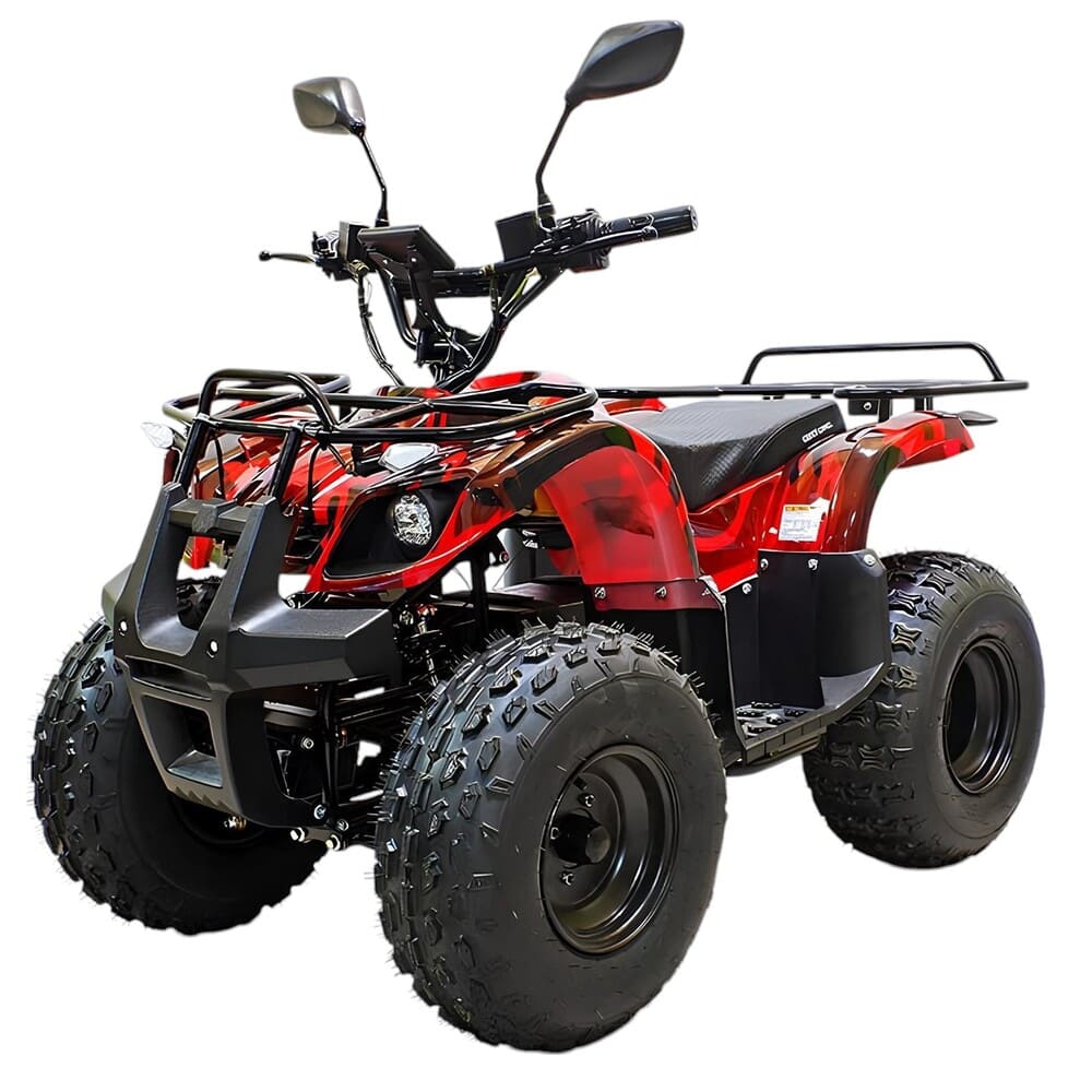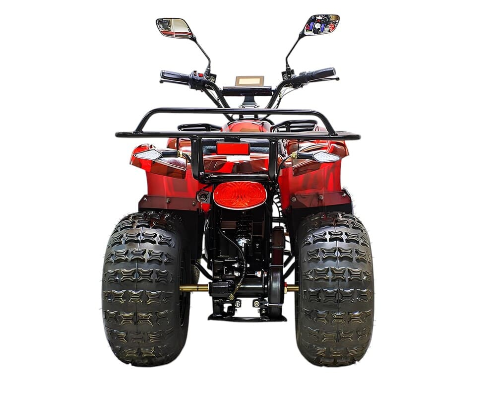 Квадроцикл комплектуется прочными колесами R8 размером 19x7-8" с отличным сцеплением с дорогой. Цепной привод обеспечивает эффективную передачу мощности и долговечность работы. Комфортная посадка и продуманная эргономика позволяют долго находиться в пути без усталости. Благодаря внушительному весу 98 кг, модель обладает отличной устойчивостью на различных типах покрытий.