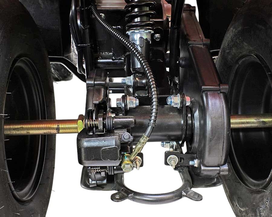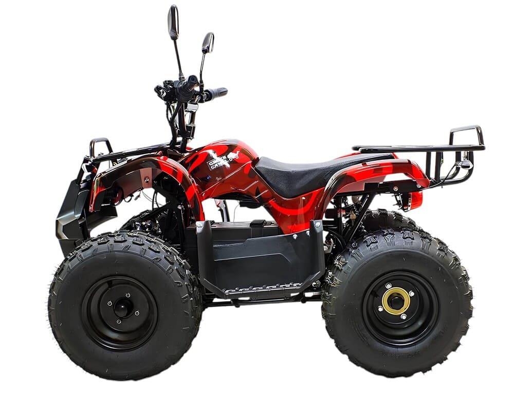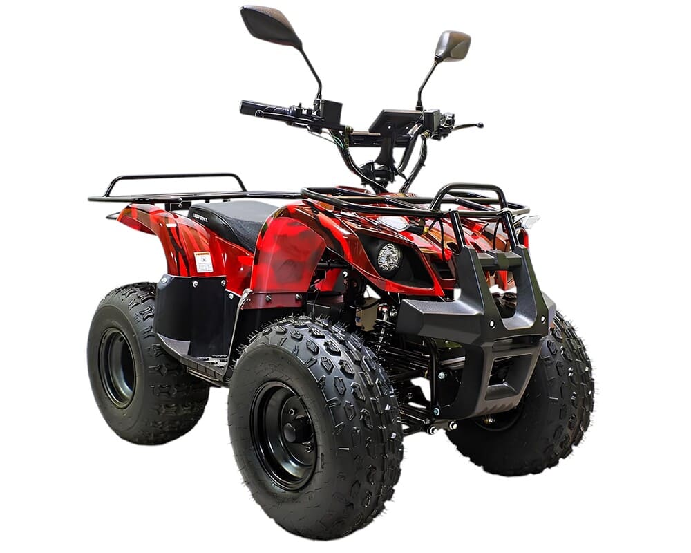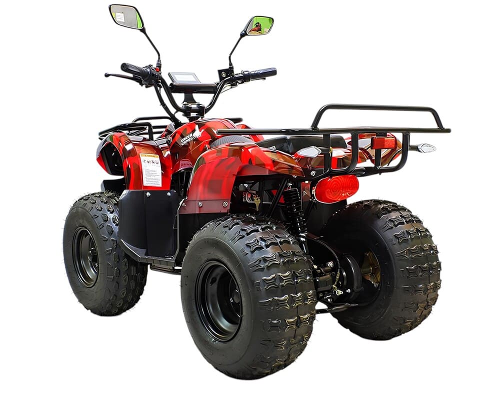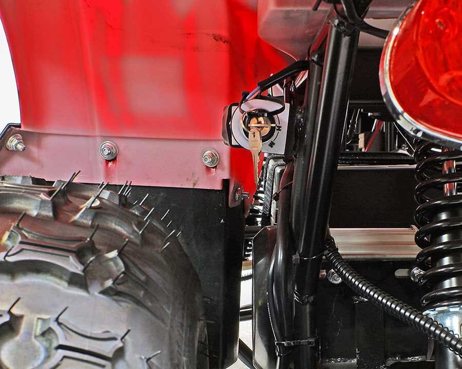 Квадроцикл комплектуется прочными колесами R8 размером 19x7-8" с отличным сцеплением с дорогой. Цепной привод обеспечивает эффективную передачу мощности и долговечность работы. Комфортная посадка и продуманная эргономика позволяют долго находиться в пути без усталости. Благодаря внушительному весу 98 кг, модель обладает отличной устойчивостью на различных типах покрытий.
