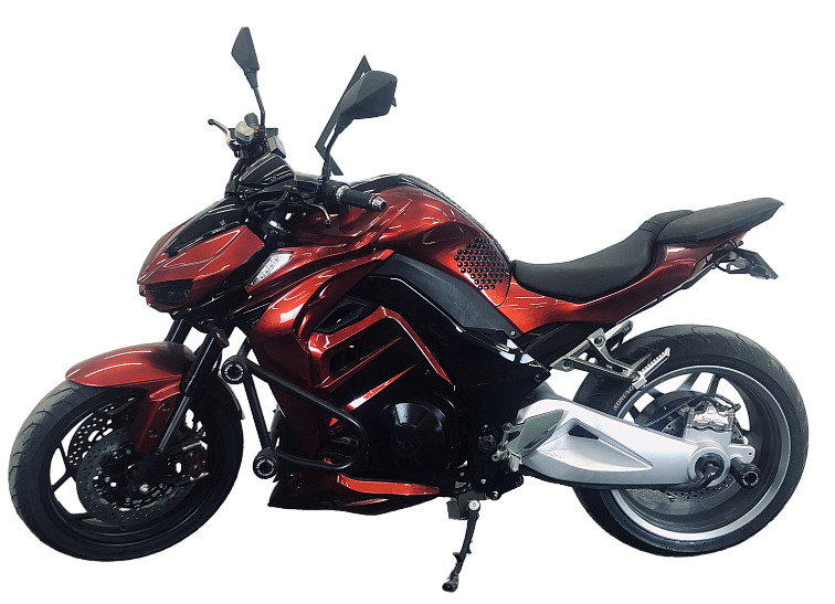 Электробайк z1000 сделан по образу легендарного мотоцикла Z1000 компании Kawasaki. Внешне модели отличить можно только по отсутствию выхлопной трубы. Во всем остальном дизайн электромотоцикла повторяет его бензиновый прототип.