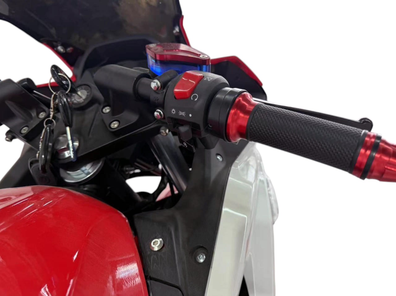 GT R3 — это высокоскоростной электромотоцикл, созданный для тех, кто требует от транспорта максимальной производительности. Оснащённый задним приводом и двигателем мощностью 3000 Вт, он разгоняется до впечатляющих 160 км/ч и обеспечивает запас хода до 120 км благодаря аккумулятору Li-ion ёмкостью 70 000 мА·ч. Полная зарядка занимает всего 6 часов, что делает его пригодным для активного использования в городских и загородных условиях без длительных простоев.