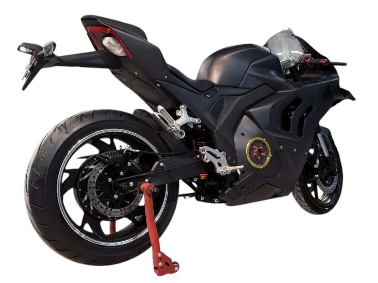 GT V4 — это флагманский электромотоцикл, созданный для тех, кто требует экстремальной производительности и технологичности. Оснащённый задним двигателем мощностью 4000 Вт, он разгоняется до 160 км/ч и обеспечивает запас хода до 120 км благодаря аккумулятору Li-ion ёмкостью 70 000 мА·ч. Полная зарядка занимает всего 6 часов, что делает его пригодным для активного использования в городских условиях и на треке. Максимальная нагрузка — до 150 кг, что ограничивает его использование для одного райдера без пассажира.