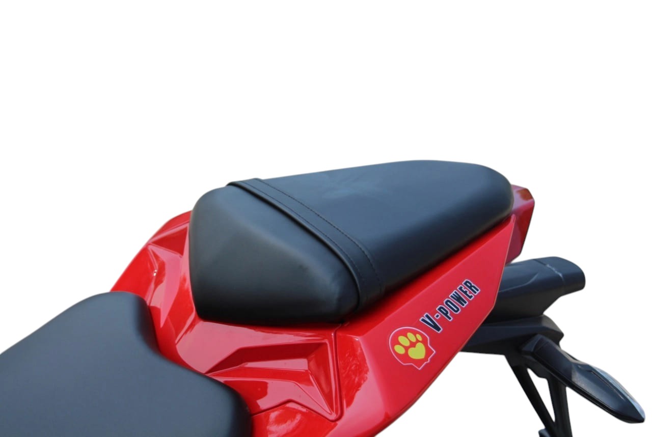GT NINJA — это динамичный электромотоцикл, созданный для скоростных поездок в городской среде и на треке. Оснащённый задним двигателем мощностью 4000 Вт, он разгоняется до 160 км/ч и обеспечивает запас хода до 120 км благодаря аккумулятору Li-ion ёмкостью 70 000 мА·ч. Полная зарядка занимает всего 6 часов, а максимальная нагрузка — до 150 кг, что делает его подходящим для одного райдера с лёгким багажом. Колёса диаметром 12 дюймов обеспечивают маневренность в плотном потоке, а стальная рама гарантирует прочность и устойчивость даже на высокой скорости.