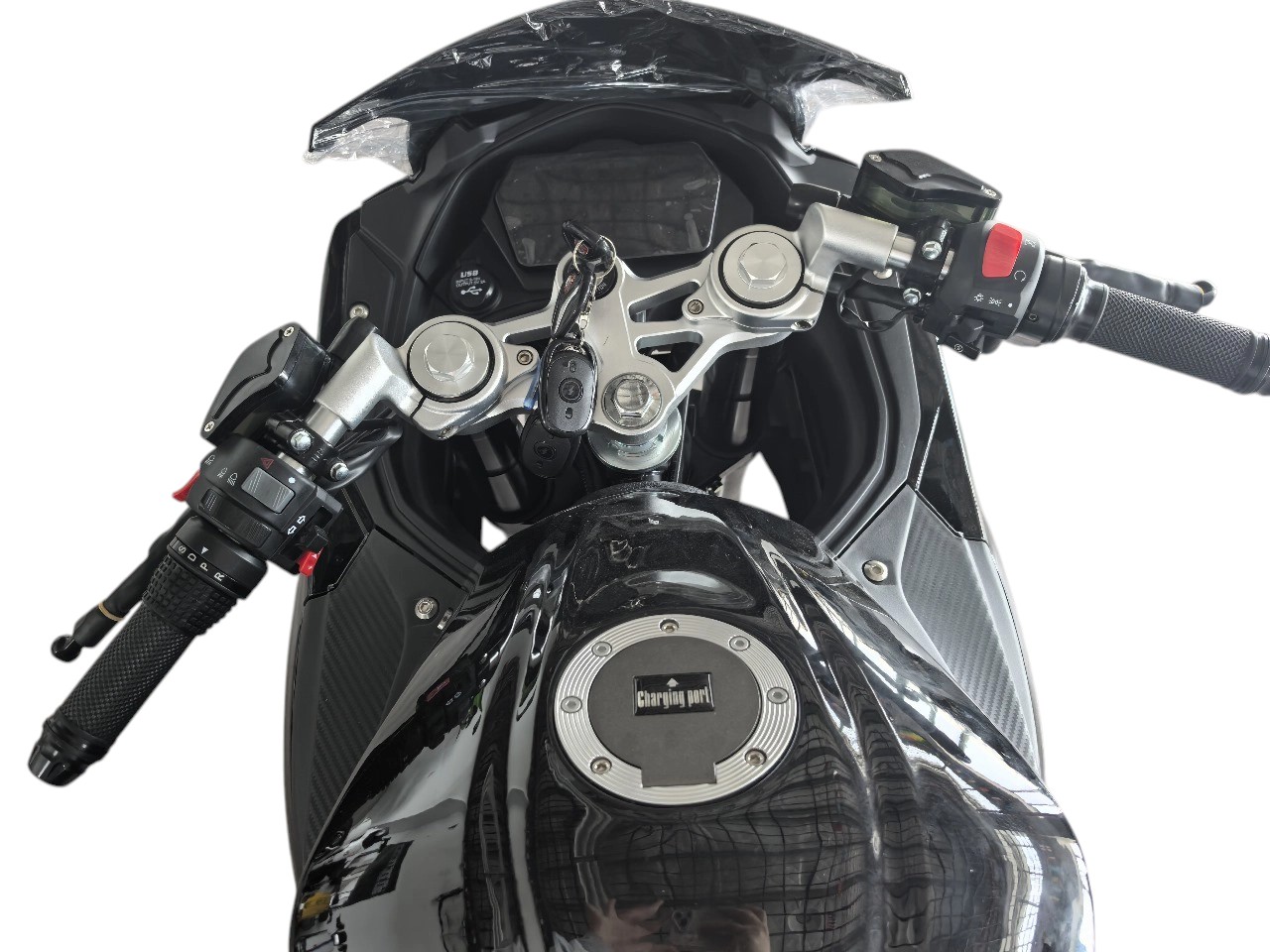 GT DRAGON — это флагманский электромотоцикл, созданный для экстремальной скорости и технологичной езды. Оснащённый задним двигателем мощностью 4000 Вт, он разгоняется до 160 км/ч и обеспечивает запас хода до 120 км благодаря аккумулятору Li-ion ёмкостью 70 000 мА·ч. Полная зарядка занимает 6 часов, а максимальная нагрузка — до 150 кг, что делает его ориентированным на одного райдера. Мощность и динамика модели сравнимы с топовыми бензиновыми мотоциклами, но без выбросов и шума.