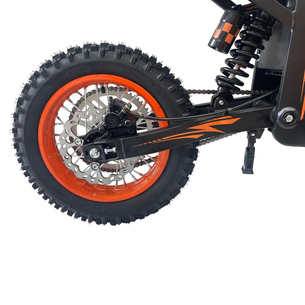 Для безопасности установлены гидравлические тормоза с тормозным путём 3–6 м, обеспечивающие мгновенную остановку даже на высокой скорости. Передняя и задняя подвеска смягчают удары от неровностей, а колёса с пневматическими шинами (14 дюймов спереди, 12 дюймов сзади) гарантируют устойчивость на любом покрытии. Дополнительные зеркала заднего вида и ЖК-дисплей повышают контроль над движением, отображая скорость, уровень заряда и выбранный режим.