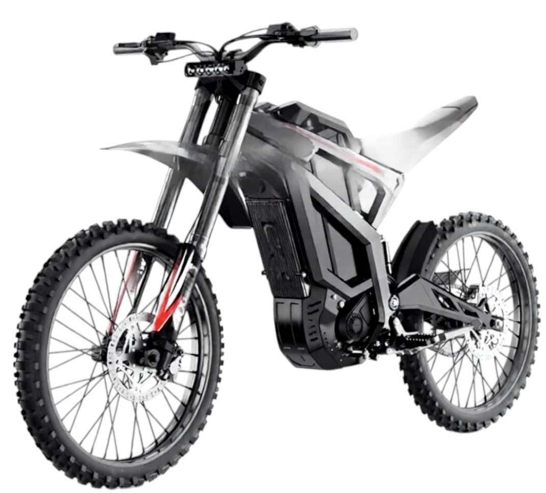 Питбайк работает от высоковольтного аккумулятора 72 В с огромной ёмкостью 50 А·ч (Li-ion), обеспечивающего запас хода до 130–150 км в зависимости от режима езды. Полная зарядка занимает около 10 часов, что обусловлено большой энергоёмкостью системы. Наличие цифрового дисплея позволяет контролировать скорость, уровень заряда, напряжение и другие ключевые параметры в реальном времени.