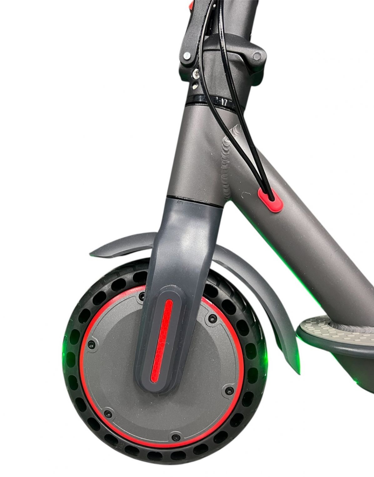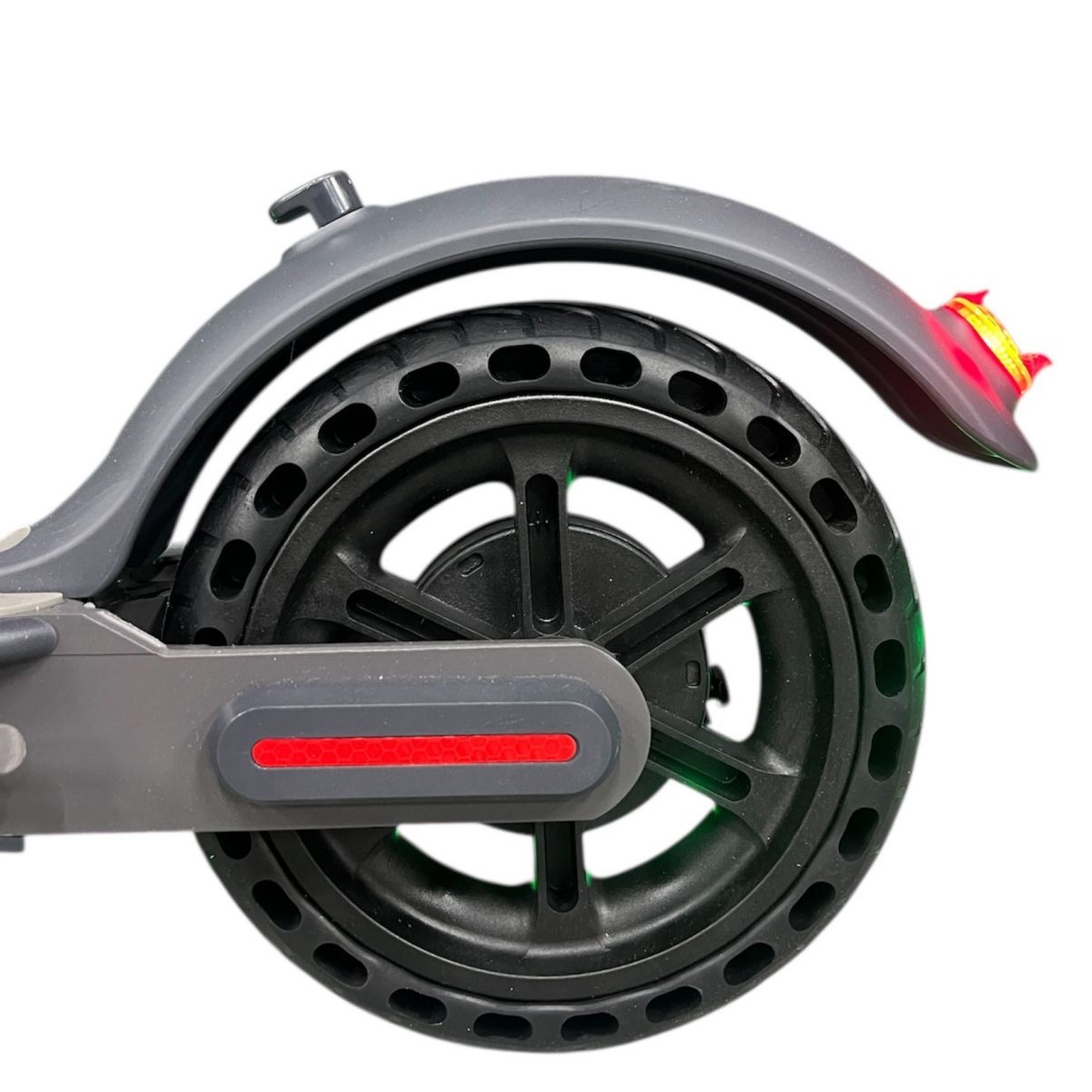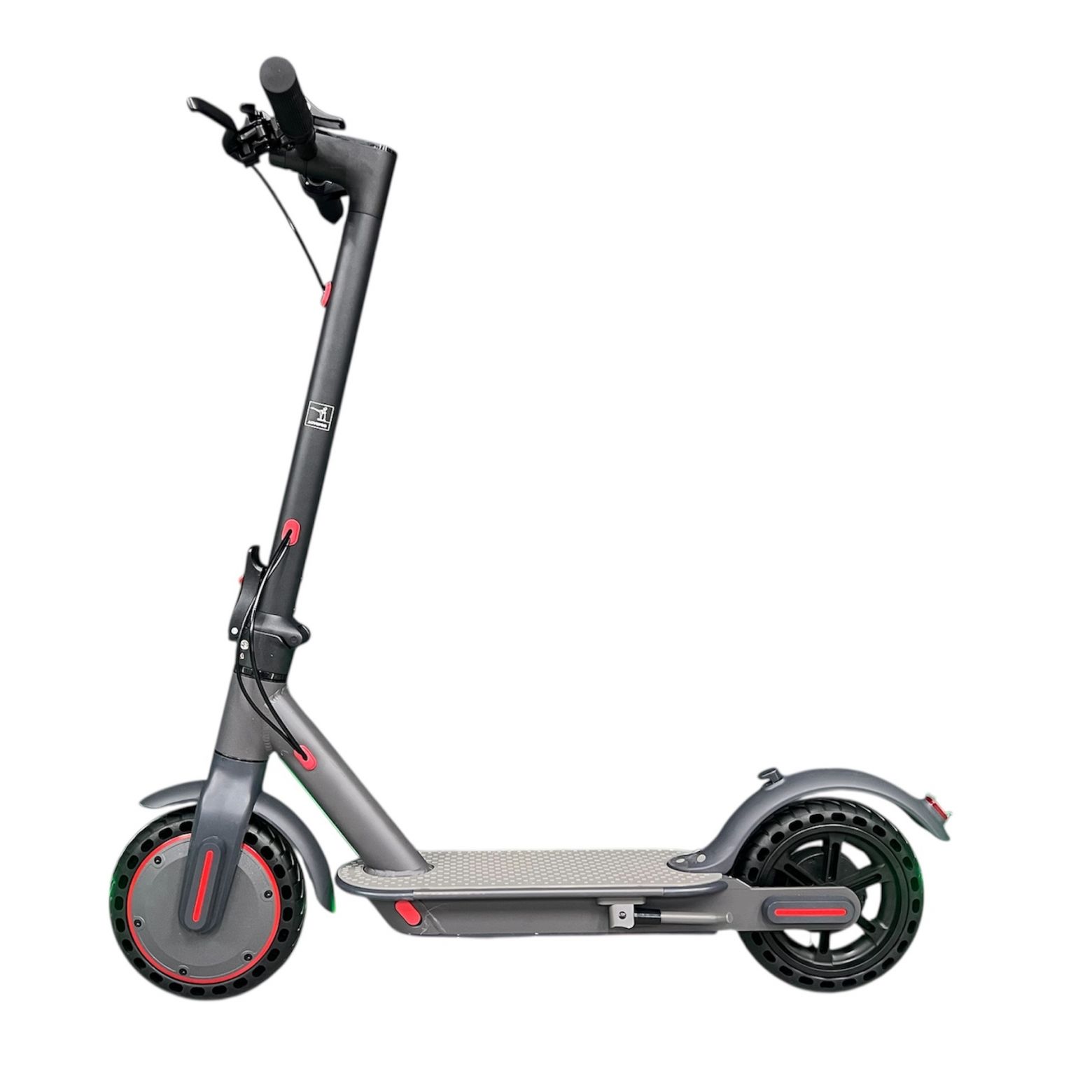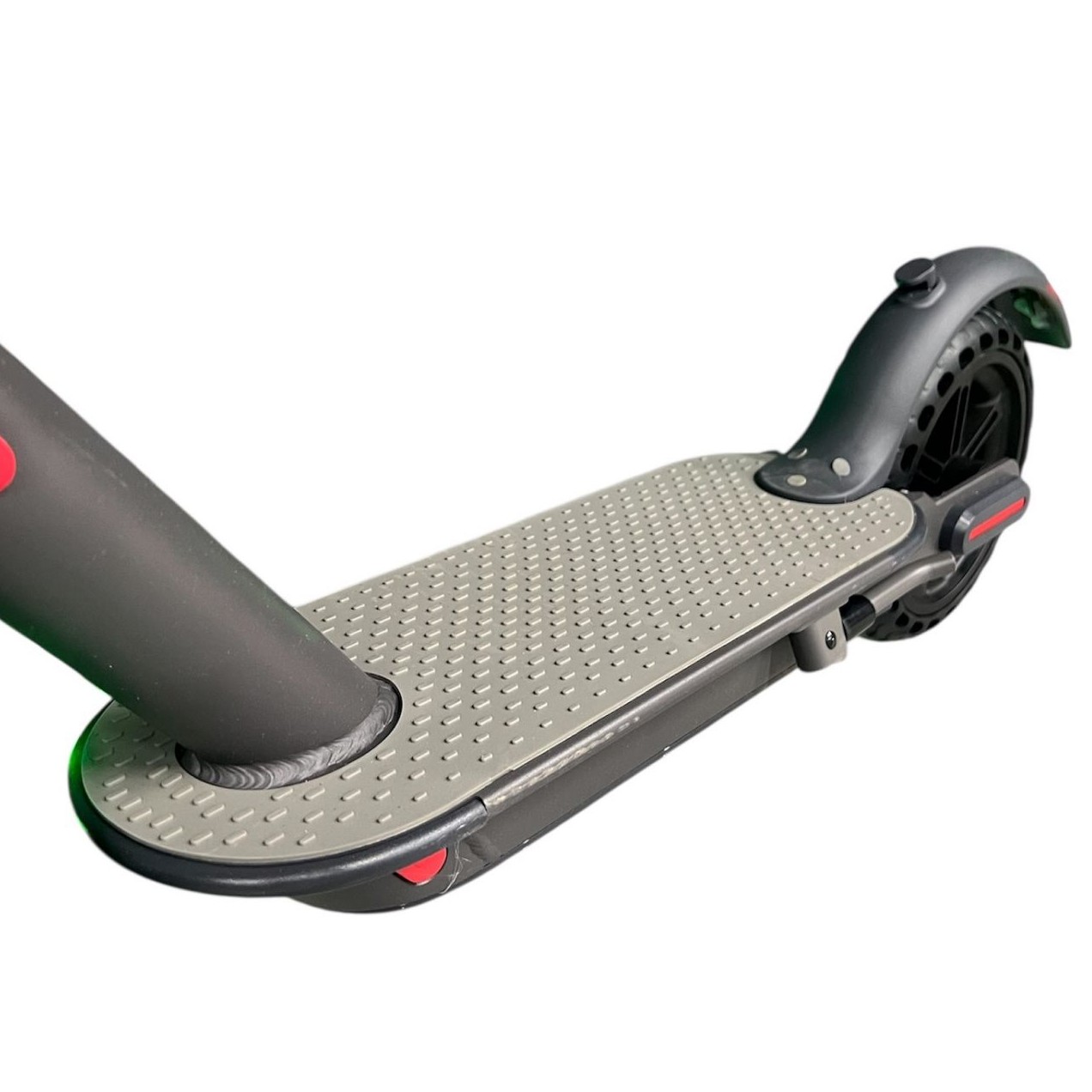 Для безопасности установлены барабанные тормоза, обеспечивающие стабильное замедление, а также цифровой дисплей, отображающий скорость, уровень заряда, режим езды и текущее состояние системы. Колёса диаметром 8,5 дюйма — литые, не подвержены проколам и не требуют обслуживания, что увеличивает долговечность и снижает эксплуатационные расходы.