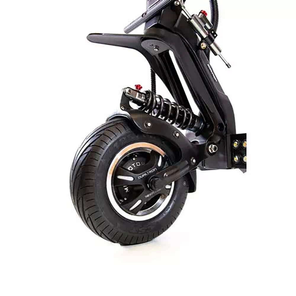 Первый самокат Dualtron с неэластомерной подвеской. Подвеска является настраиваемой - настройка жесткости/мягкости работы подвески выполняется крутящимся барашком на корпусе переднего и заднего аммортизаторов. Можно быстро изменить настройки аммортизатора при изменении дорожного покрытия во время поездки, например - для езды по ровному асфальту делаем аммортизаторы более жесткими, а при езде по пересеченной местности, наоборот - смягчаем работу подвески.